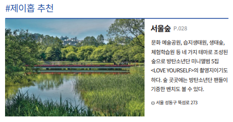 먼저 bts 멤버별로 추천하는 관광장소 입니다.