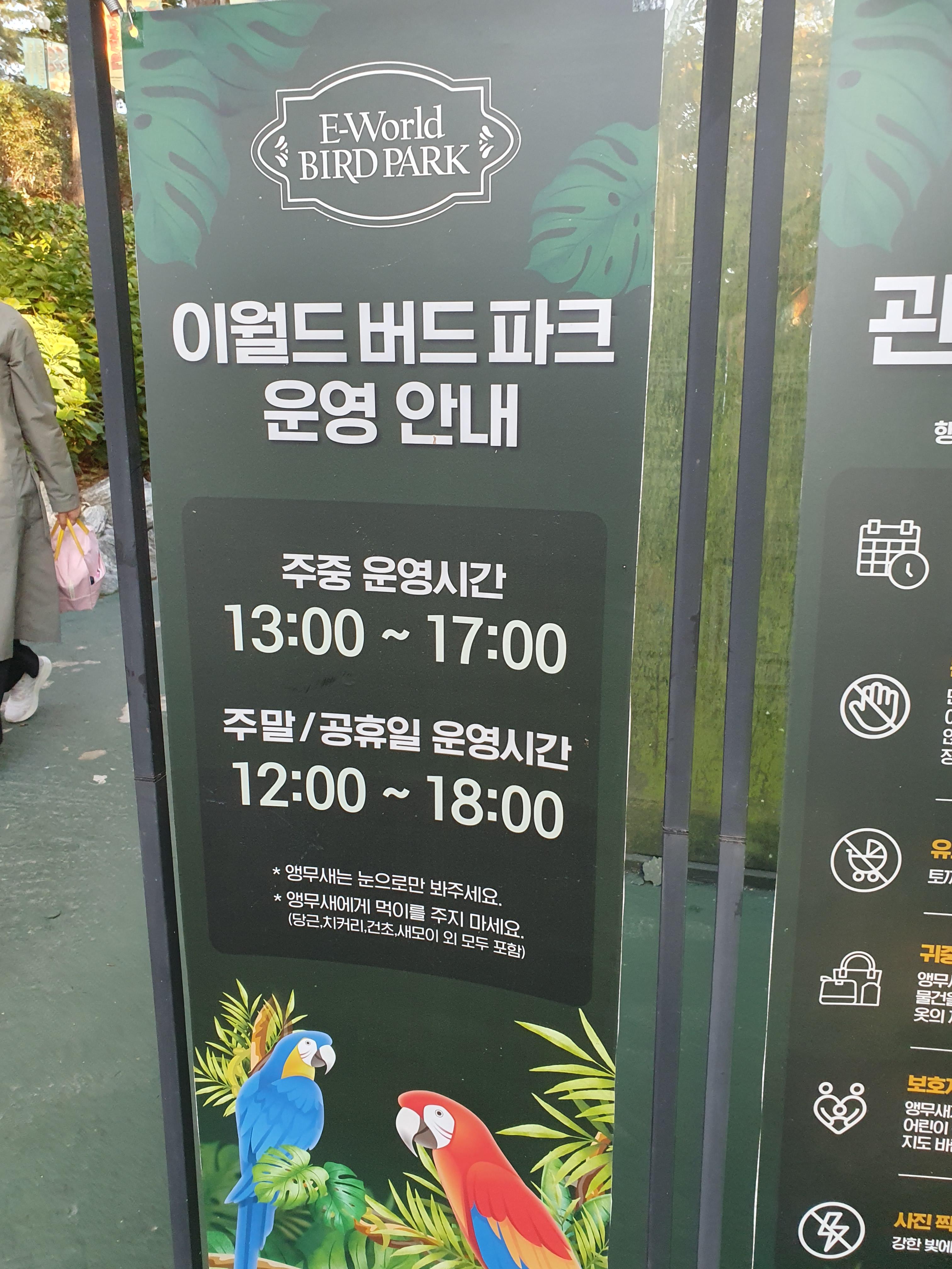 입구 바로옆에 새들을 직접만지고 볼 수 있는 버드파크가 있습니다.