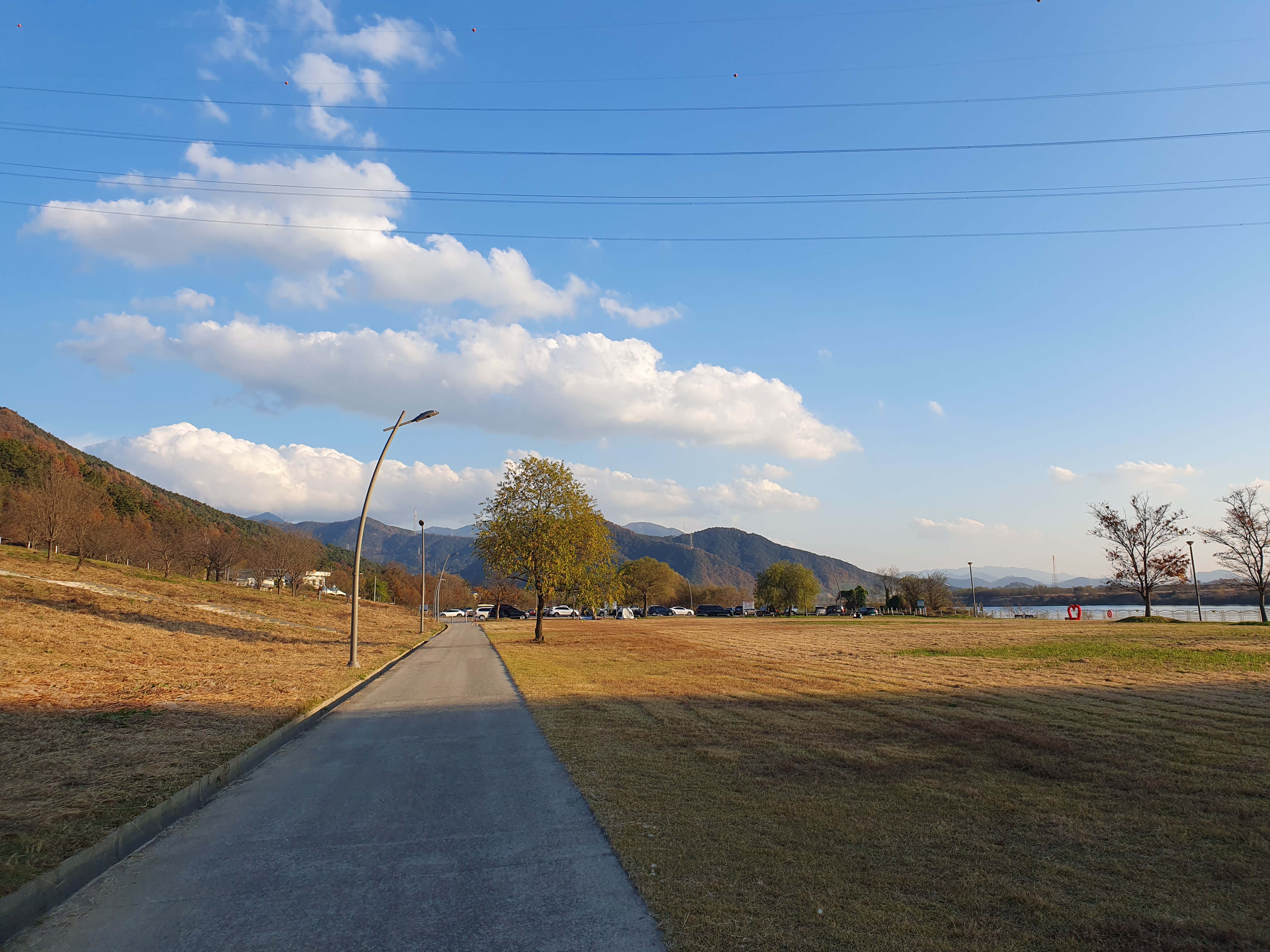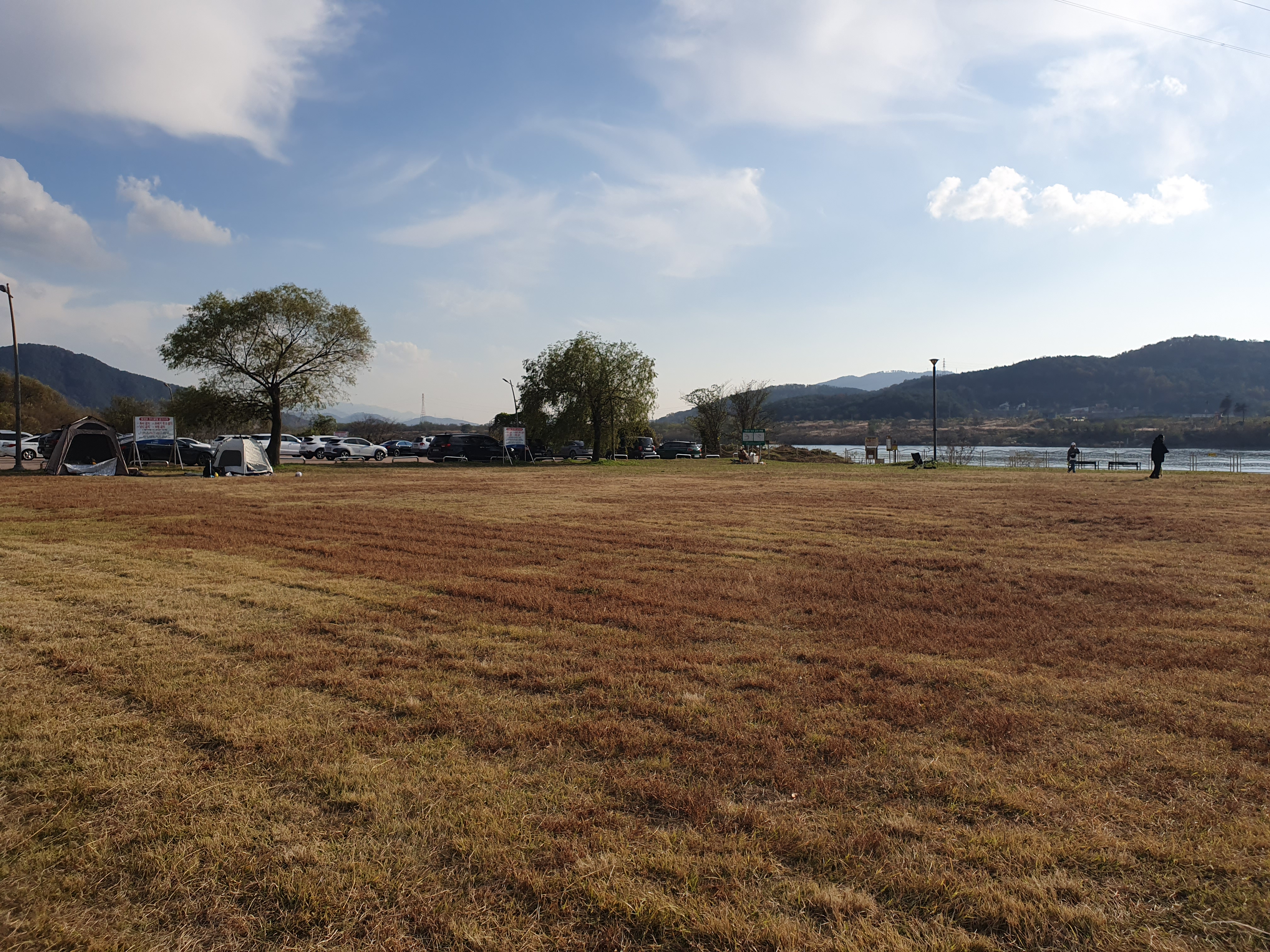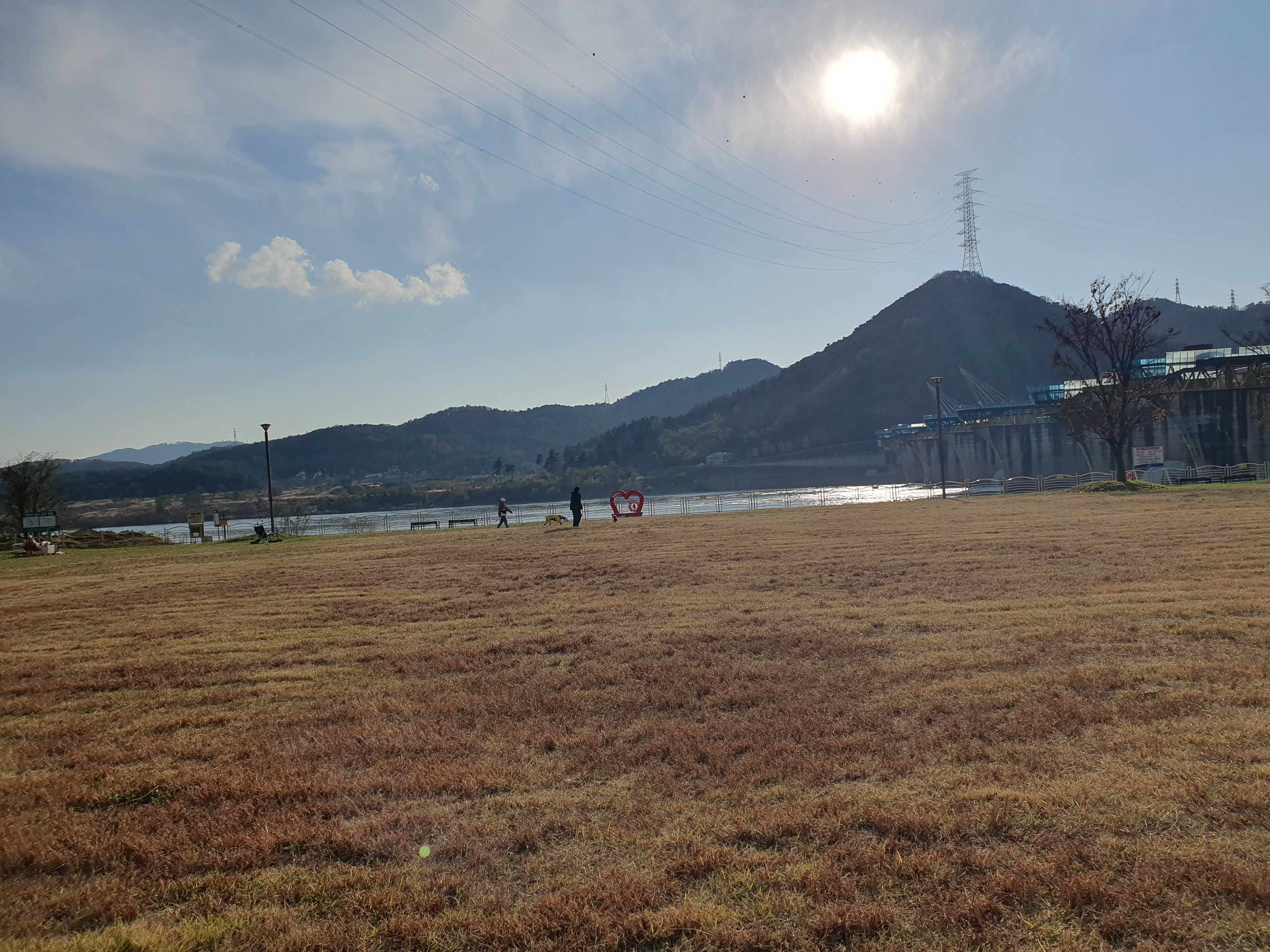 강옆으로 넓은 잔디밭이 있어 아이들이 신나게 뛰어놀 수 있었습니다.