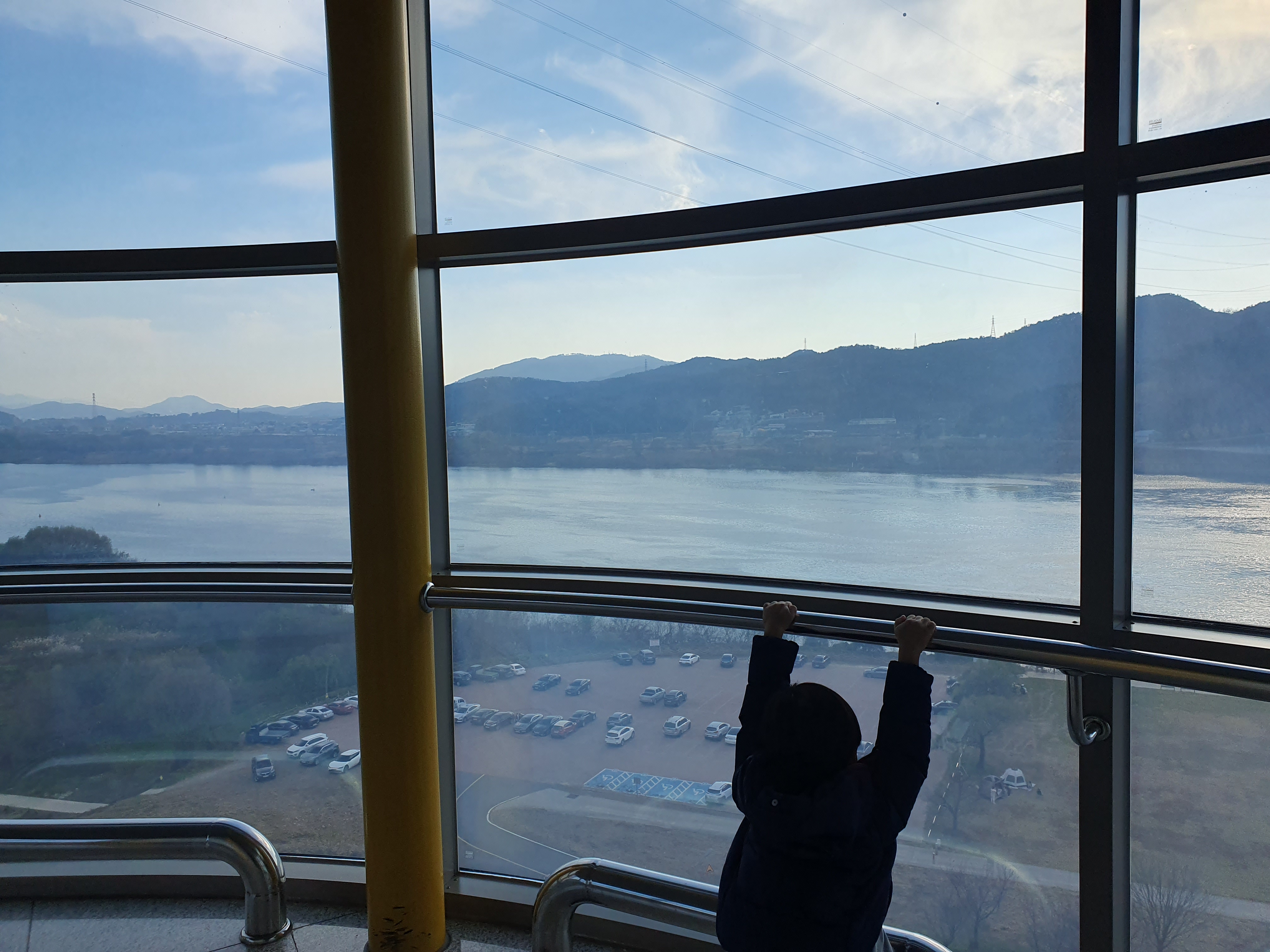 달성보 전망대에 올라가서 탁트인 전망을 보니 기분이 너무 좋아졌습니다. 아이들도 너무 좋아해서 한동안 내려가지 않고 멋진경치를 구경했습니다.