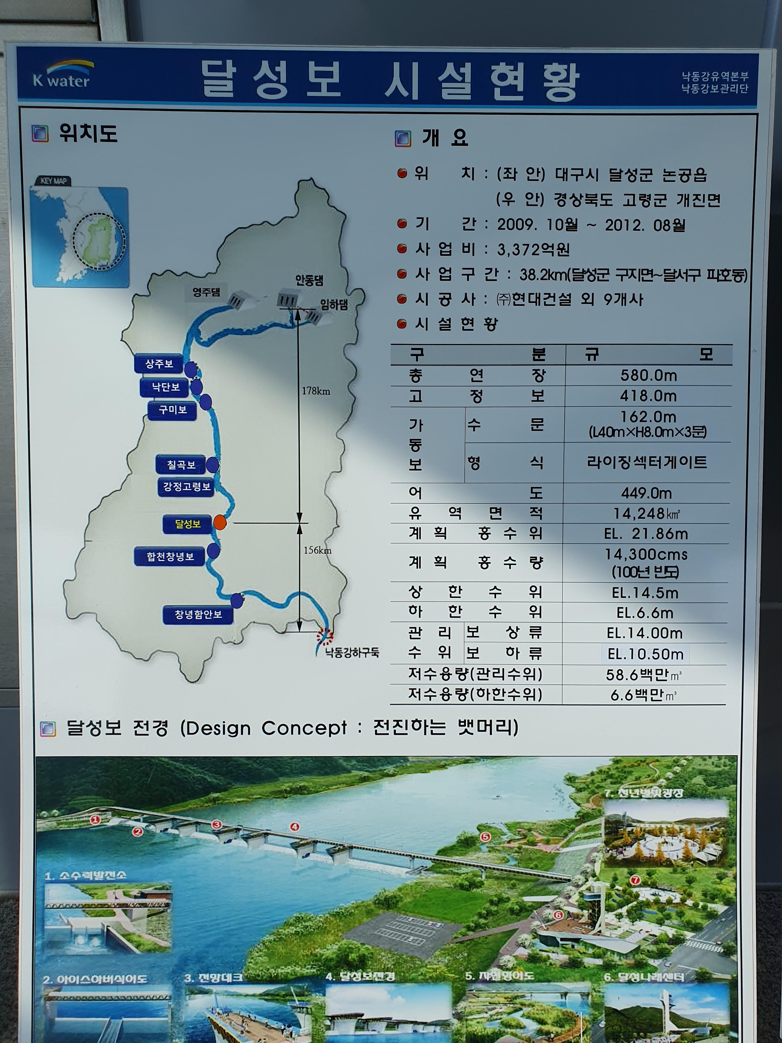 낙동강 줄기를 따라 가다보면 경관이 아름다운곳이 많은데요. 달성보도 강을따라 넓은 잔디밭과 전망대가 있어 아이들과 놀러가기 좋습니다.