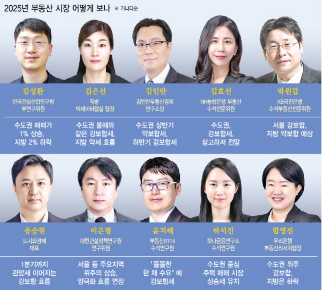 부동산 전문가들의 25년 집값 전망을 보시면 수도권은 여전히 상승을 예상하고 있습니다.