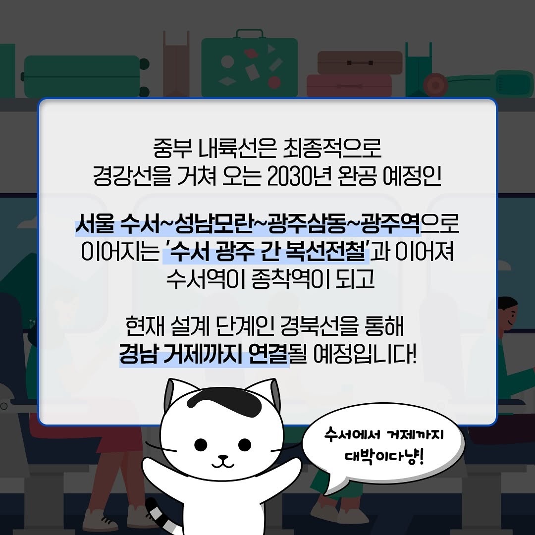 중부내륙선은 2030년 최종개통예정인데요. 계획대로 된다면 우리나라가 남북으로 더욱 촘촘하게 연결되는 교통망이 생기게 되는거라 기대가 많이 됩니다.