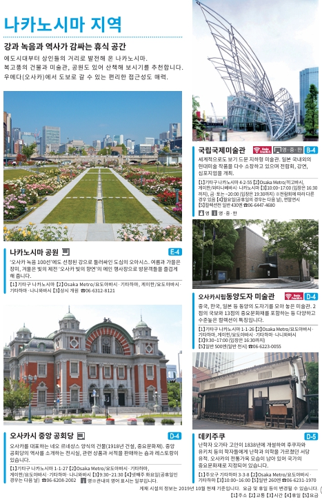 오사카 시내 관광지를 테마별로 구분하여 관광명소를 소개하고 있으니 취향에 따라 선택하시면 될거 같습니다.