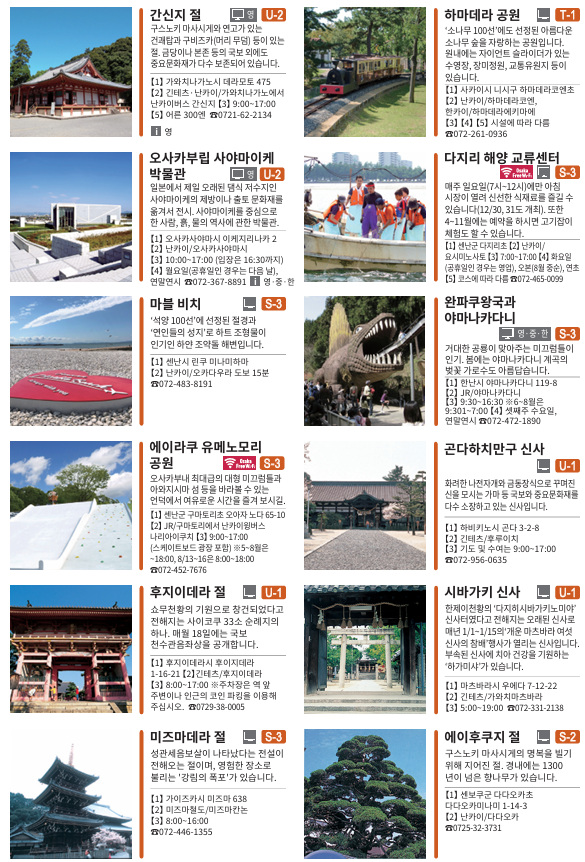 오사카 남부 대표적인 관광지는 아래와 같습니다.