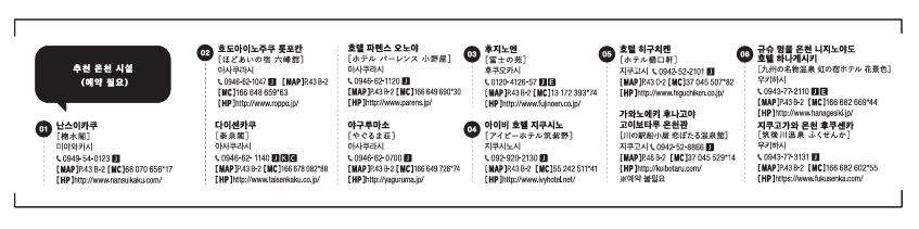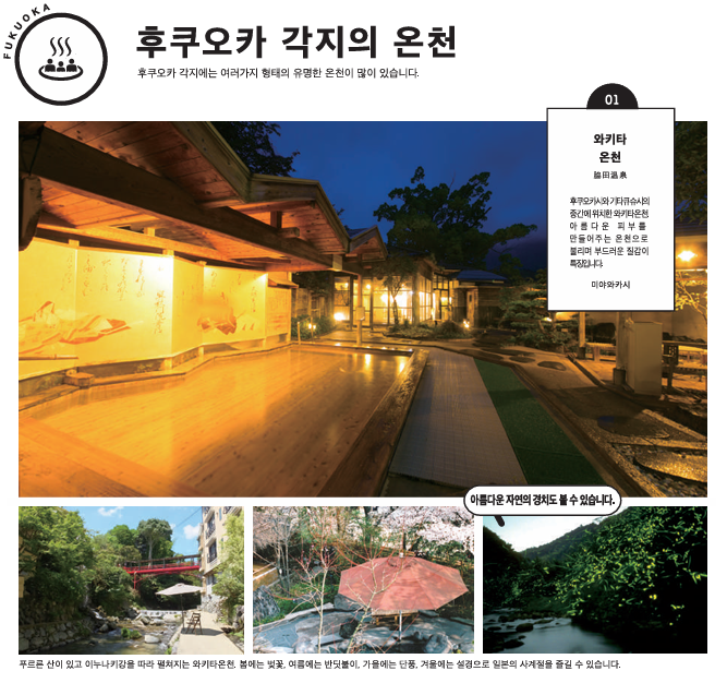 후쿠오카 공식 관광 가이드북에서 추천하는 후쿠오카 온천정보입니다.