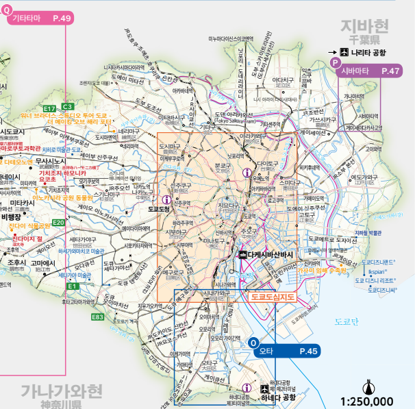 도쿄 여행시 아래 도쿄(도심) 여행지도 참고하시면 됩니다. 화질이 좀 떨어져 pdf원본 파일을 글 제일 아래에 첨부하도록하겠습니다.(아래 자료는 도쿄 공식 관광가이드북 내용입니다)