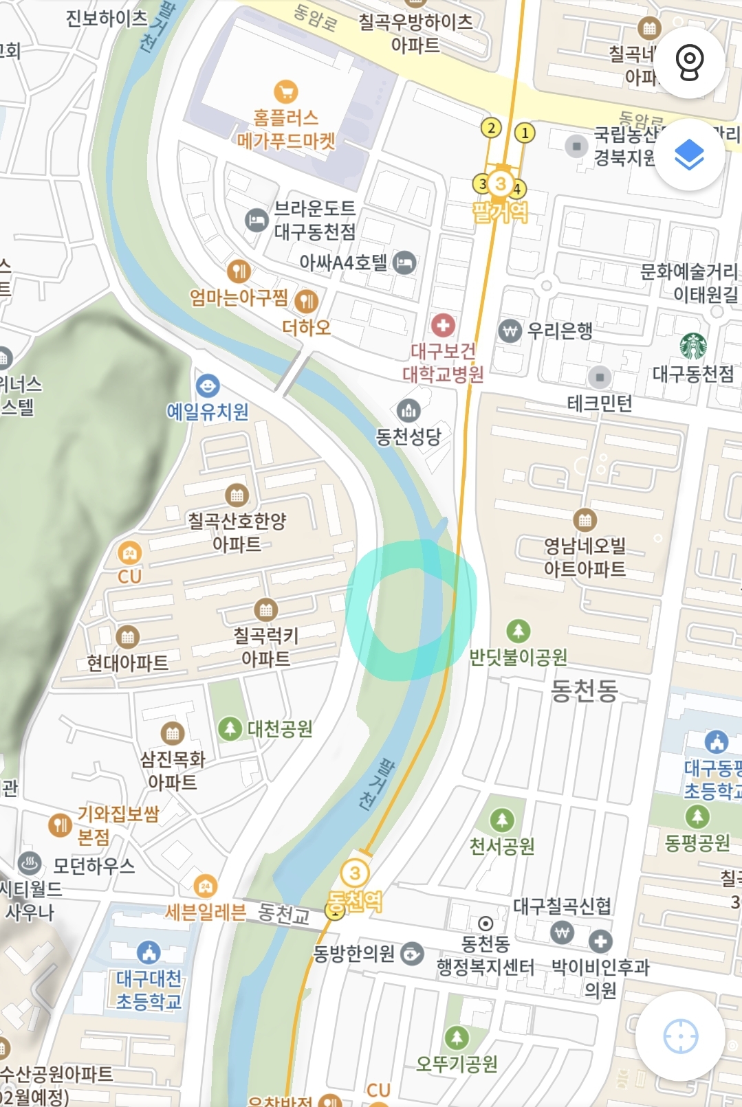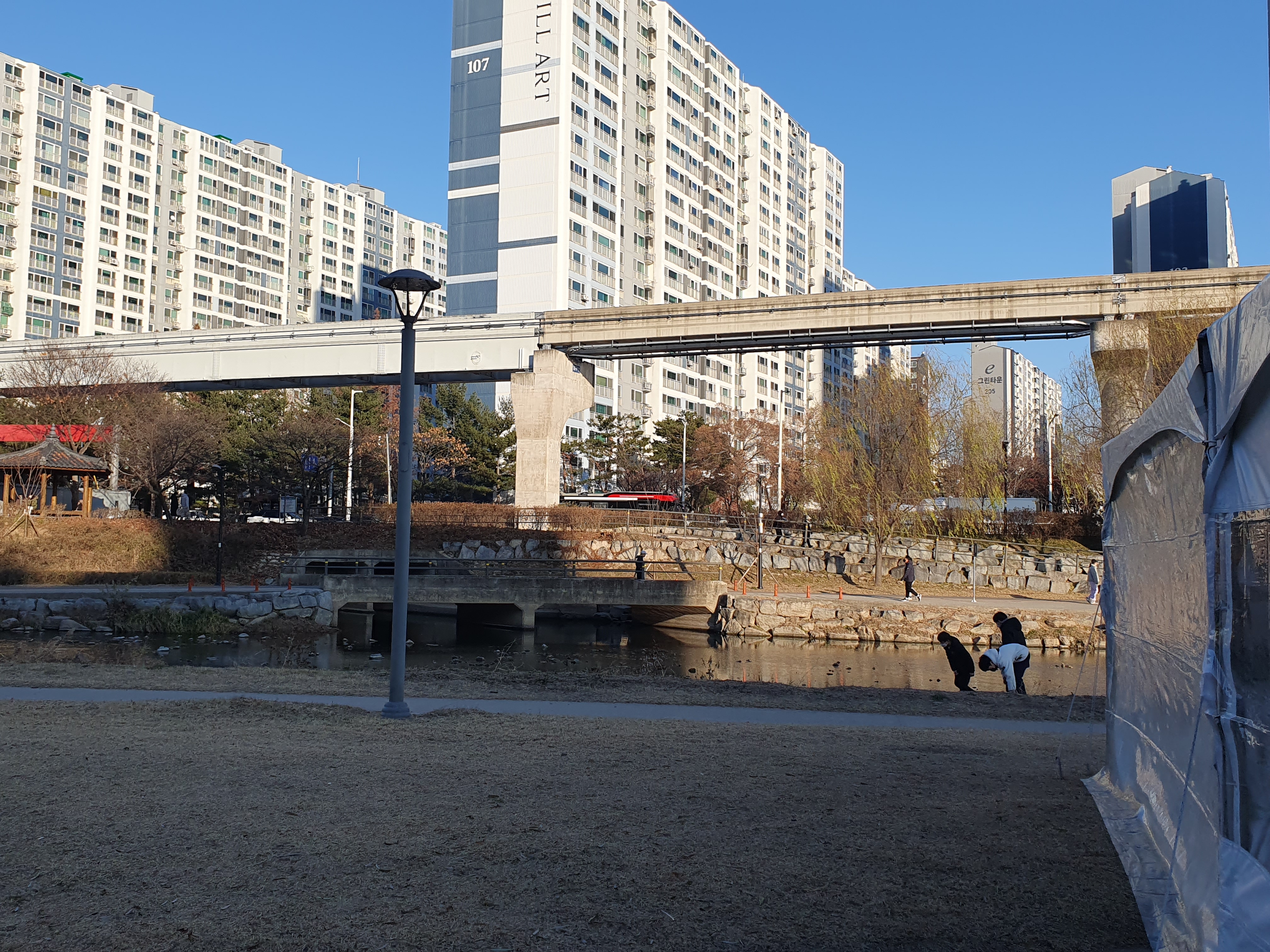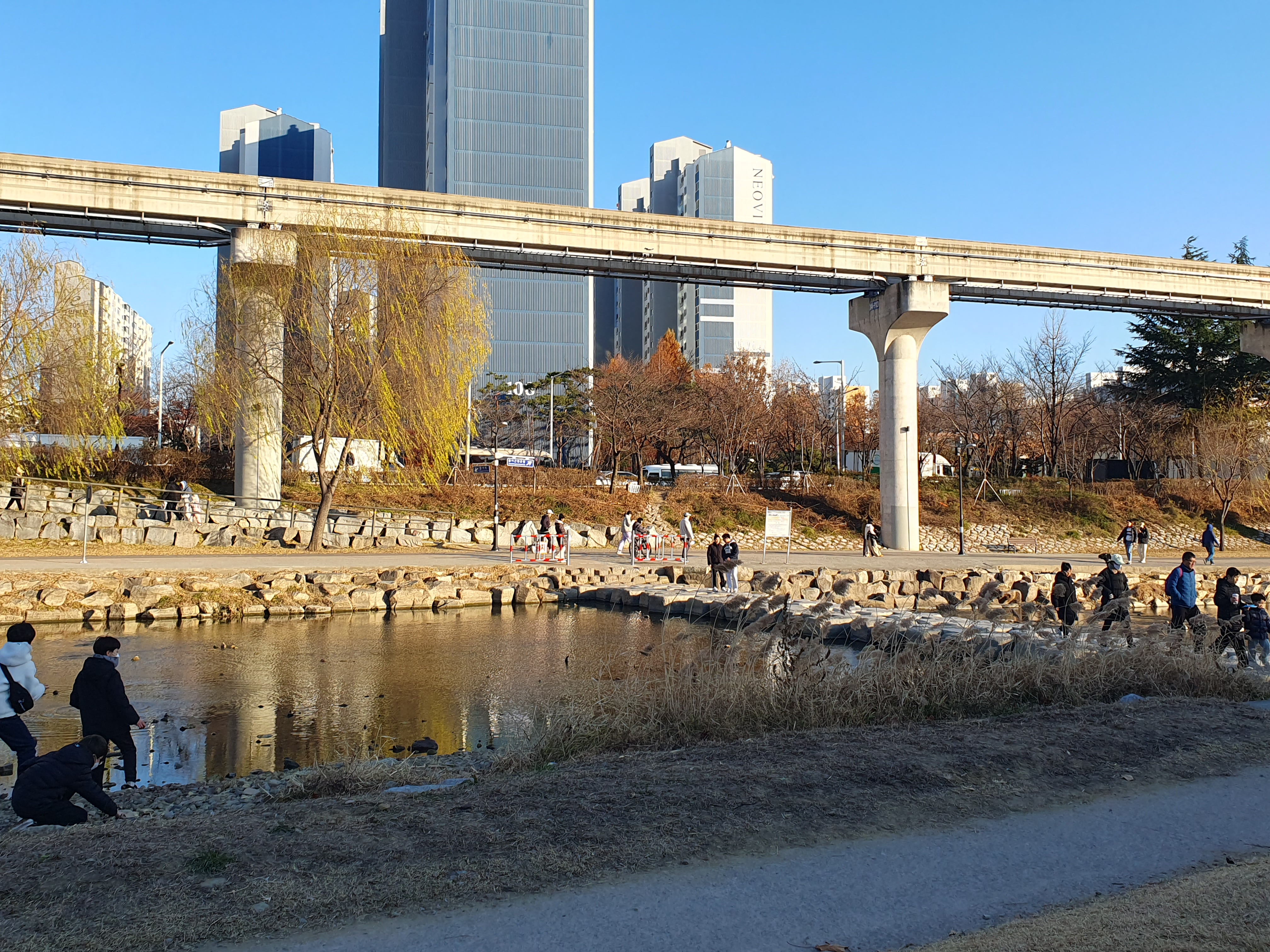 팔거천에 사진에는 잘 안보이지만 물고기들도 있습니다.