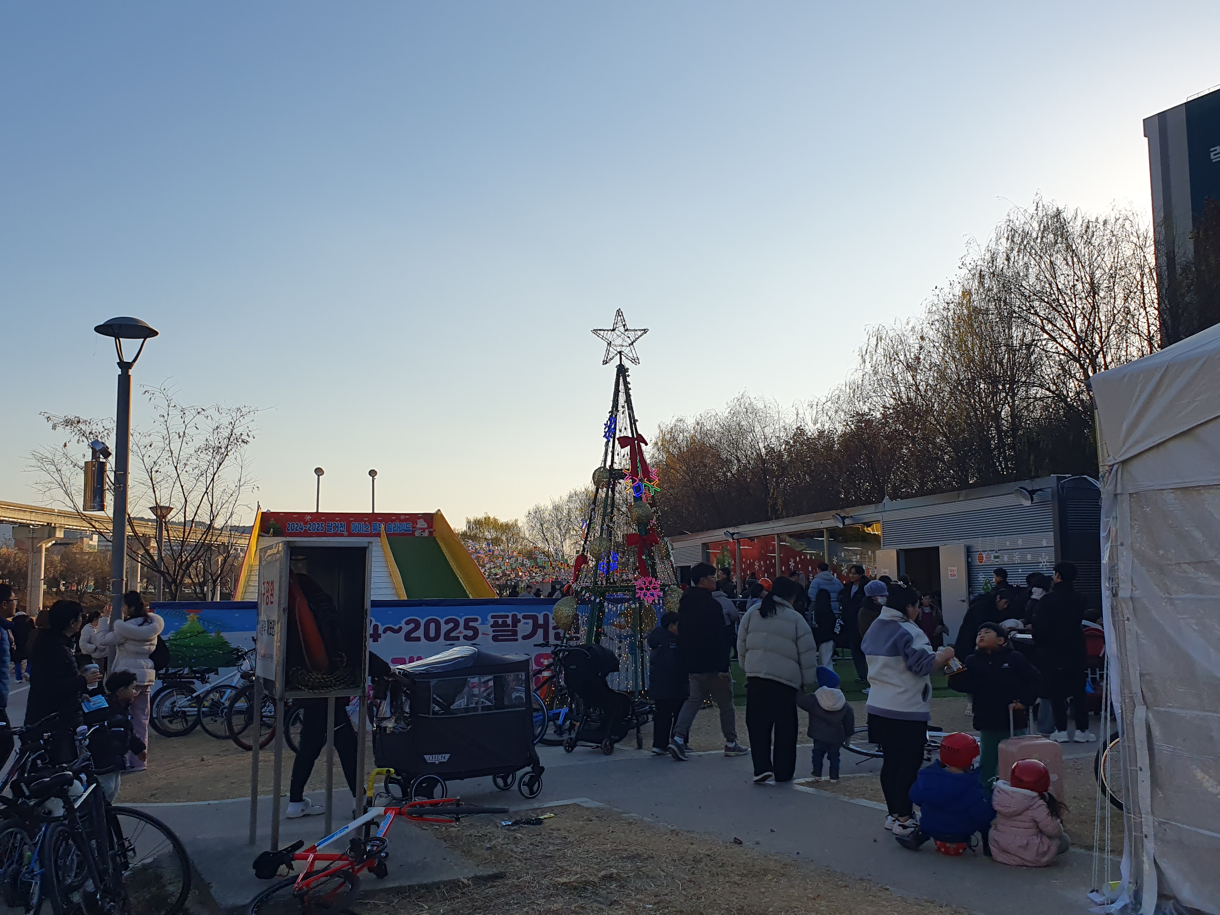 대구 북구에 팔거천 야외 스케이트장이 개장되었습니다.