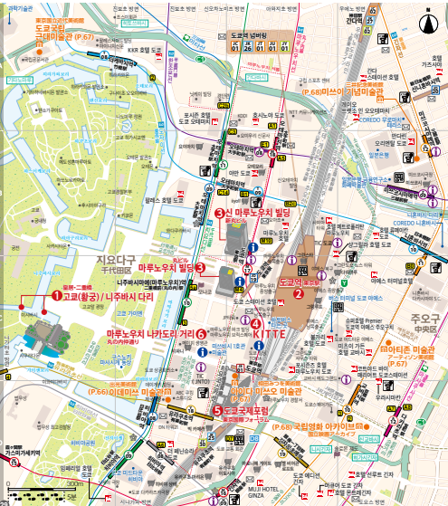 마루노우치는 전통적인 관광지로 옛 황궁터가 그대로 보존되어 있고, 도쿄역을 지나가기 때문에 포럼이나 미술관같은 문화적 관광시설이 많습니다. 그리고 다양한 쇼핑몰, 백화점까지 있어 관광객들의 만족도가 높다고 합니다.
