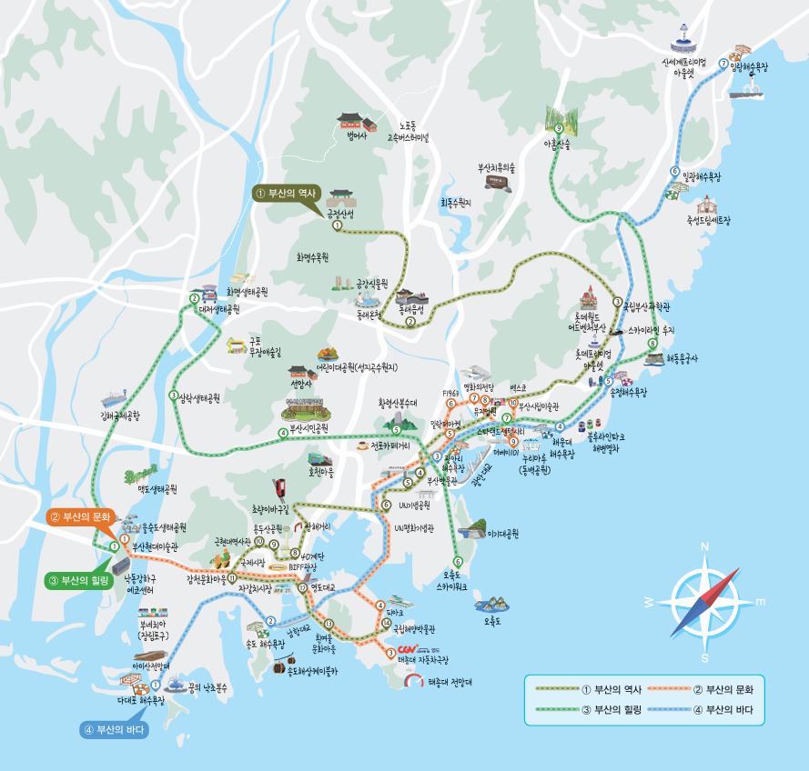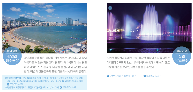 부산시에서 부산의 바다를 즐길수 있는 코스를 아래와 같이 추천하고 있습니다.