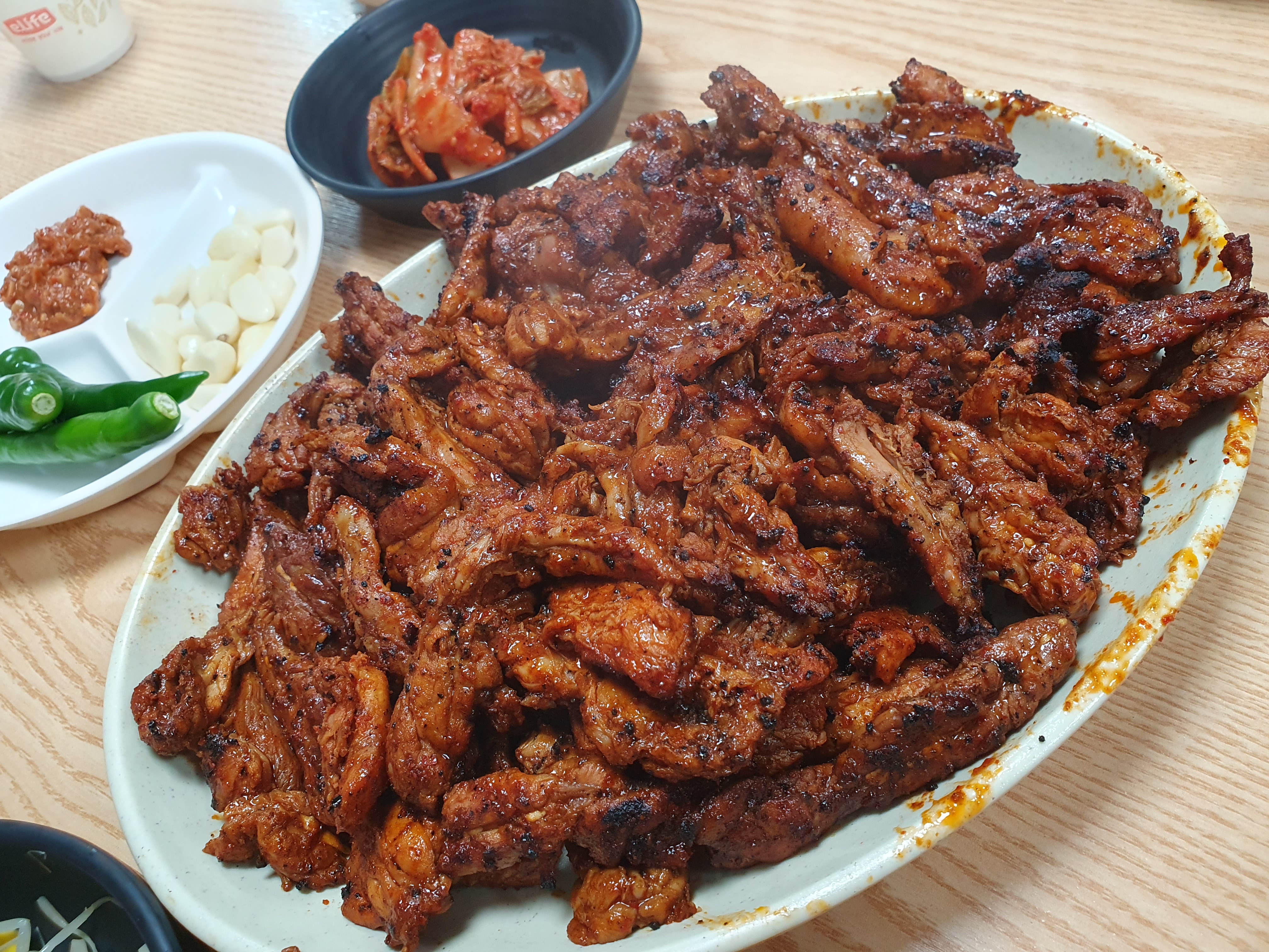 닭목 2인분 닭포1인분 섞은 모습입니다. 닭목이 부드럽고 닭포는 조금 질겼습니다.