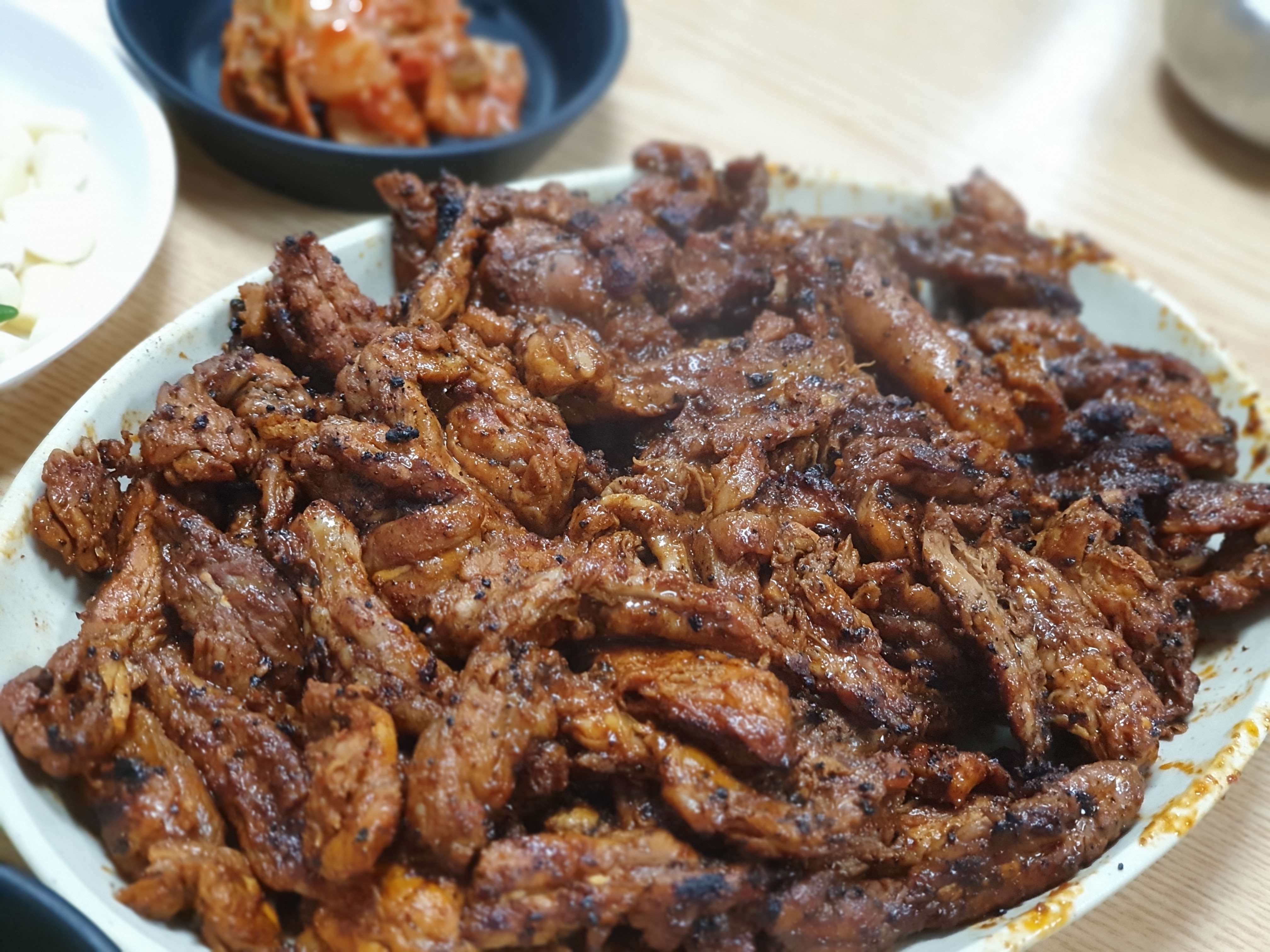 군위 시장 닭발 음식은 상당히 저렴했습니다. 저희 5식구인데 고기 세개시키고 공기밥만 인원수대로 시켜서 먹었는데 고기가 많이 남아 포장해왔습니다.