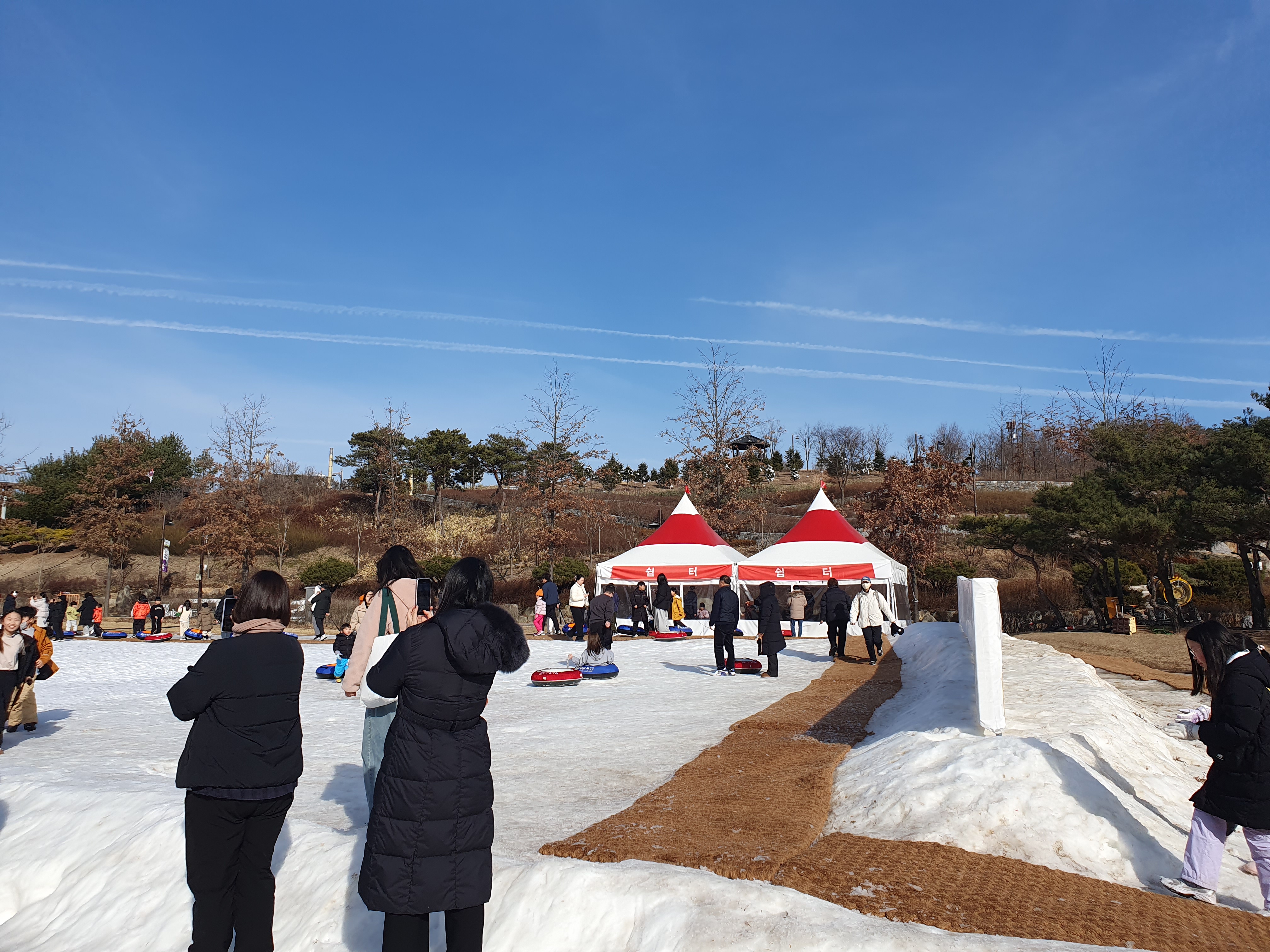 겨울이 지나기 전에 아이들에게 눈썰매를 태워주고 싶어 대구 군위에 위치한 삼국유사테마파크 눈썰매장에 다녀왔습니다. 얼마전까지만 해도 군위가 경상북도 관할이었는데 대구시로 편입되어 대구광역시 군위군으로 불리고 있습니다.