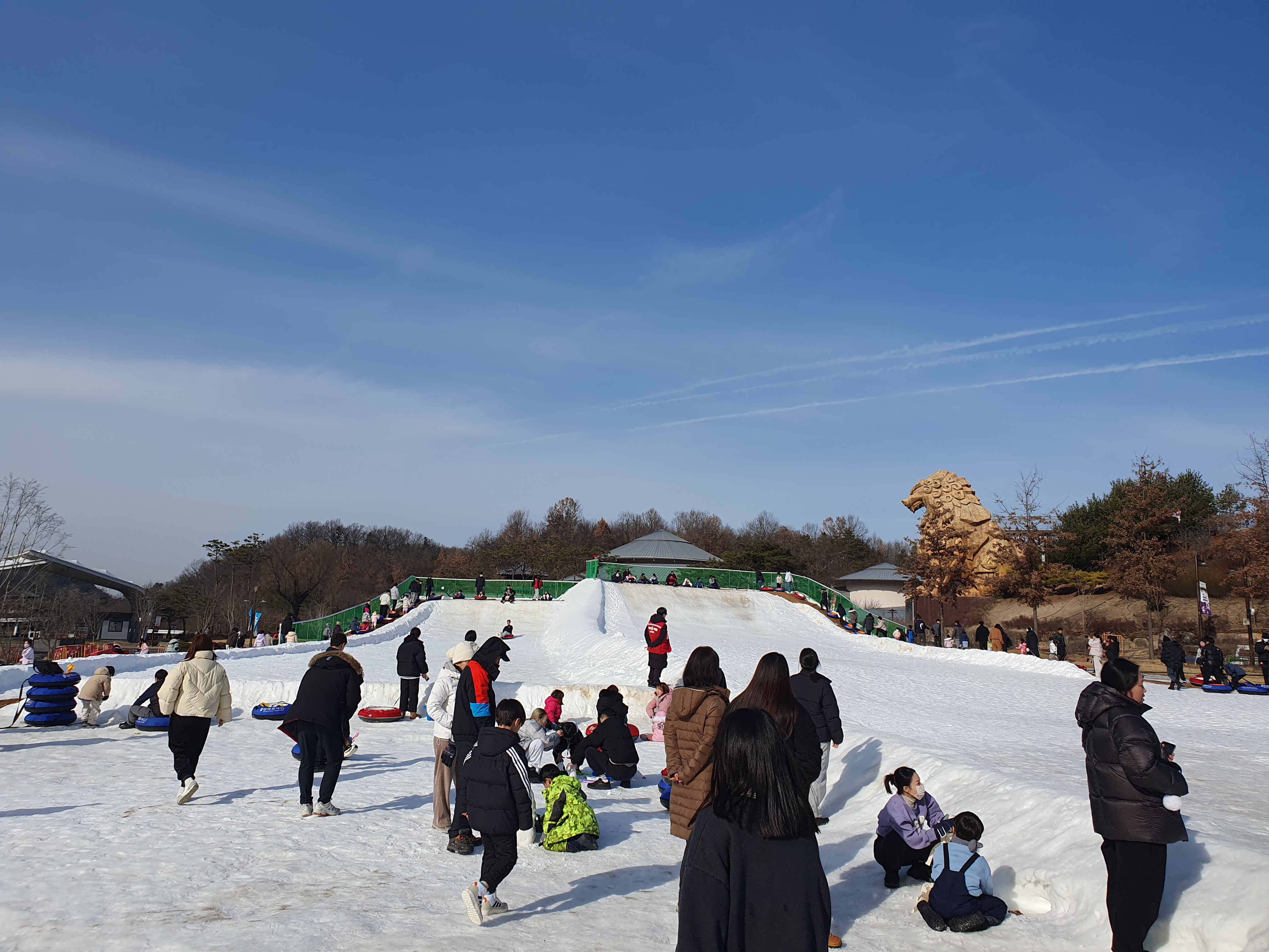 겨울이 지나가기 전에 아이들과 신나게 눈썰매를 탈 수 있는 군위 삼국유사테마파크에 방문하시길 추천드립니다.