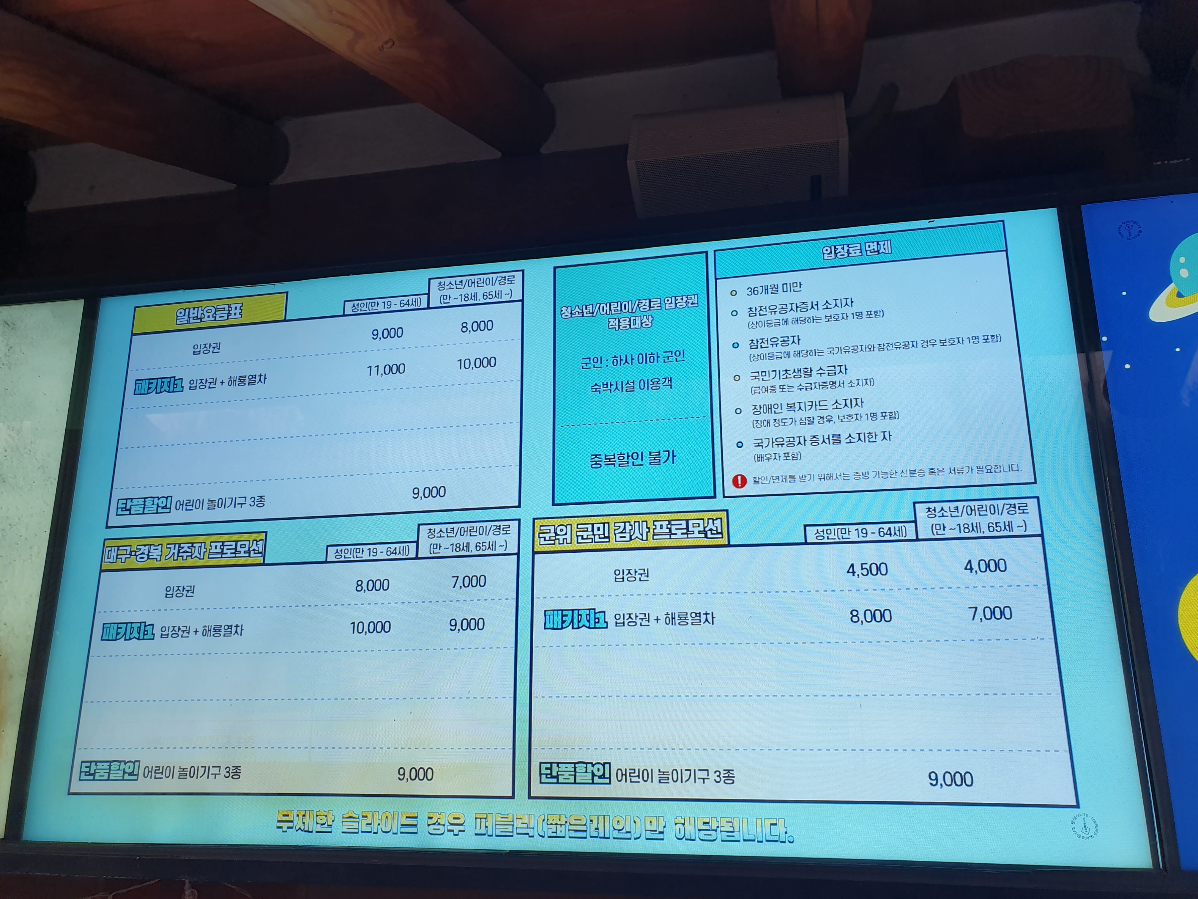 삼국유사테마파트 입장료는 아래와 같습니다. 여러 할인이 있는데 특이하게도 해당월 생일자도 할인이 되는 곳입니다.