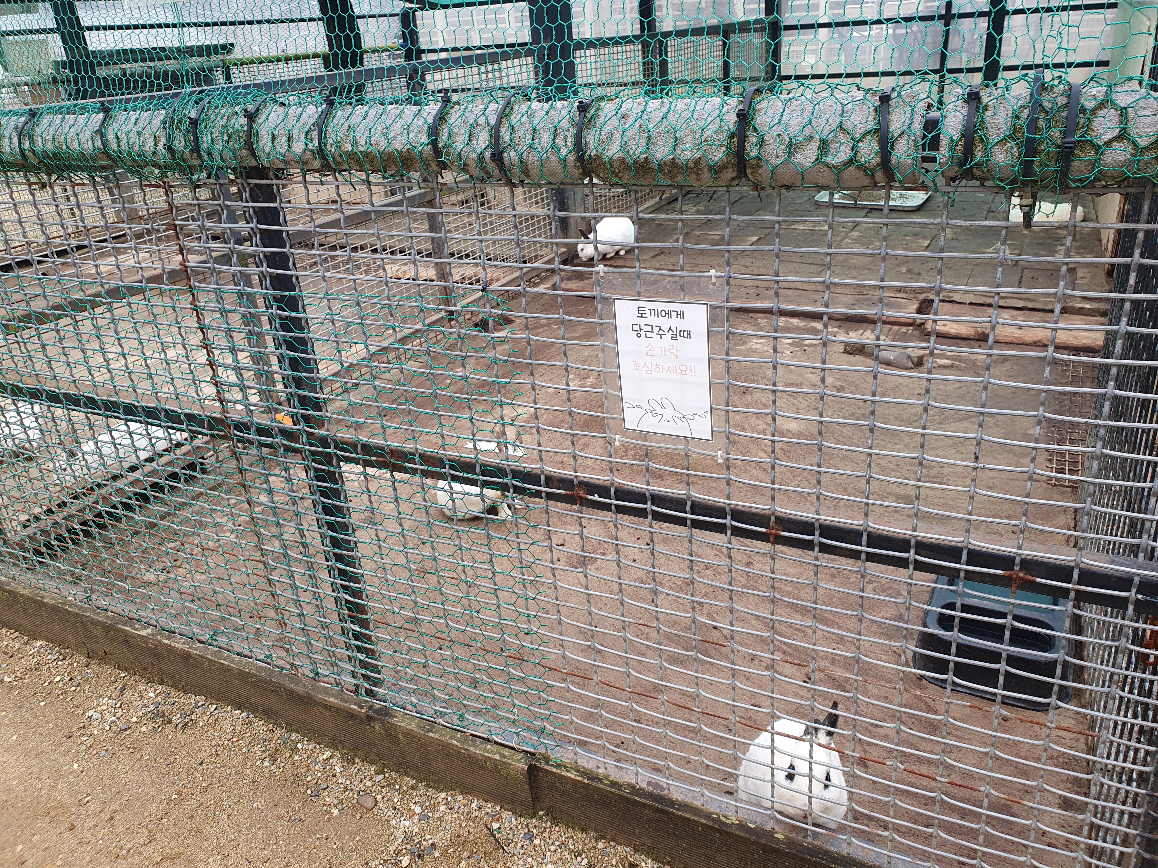사슴, 강아지, 닭, 토끼 등이 있는데 카페에서 동물들에게 줄 수 있는 당근을 판매합니다.