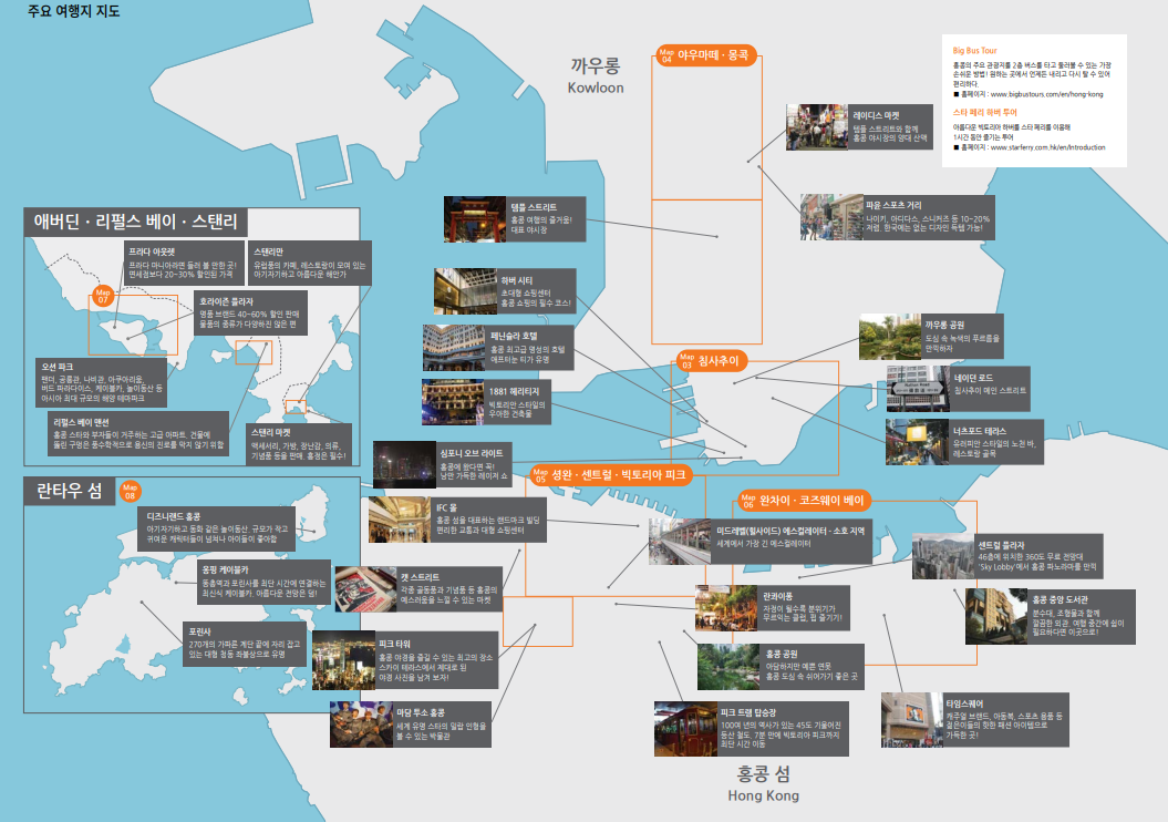 아래 홍콩 주요 여행지도를 참고하시어 즐거운 여행 되시길 바랍니다.