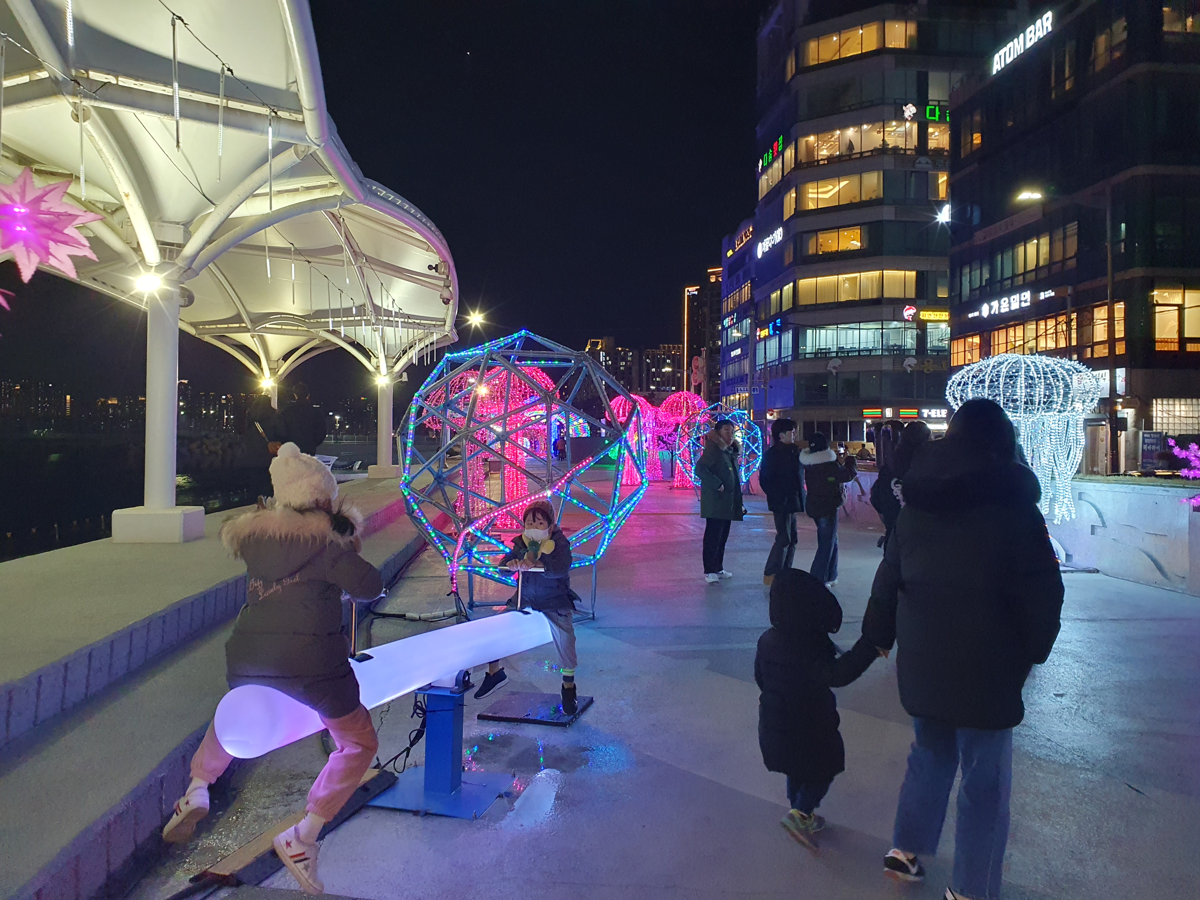 밤늦은 시간이었는데도 불구하고 빛 축제를 즐기기 위해서 사람들이 꽤 많이 나와있었습니다.