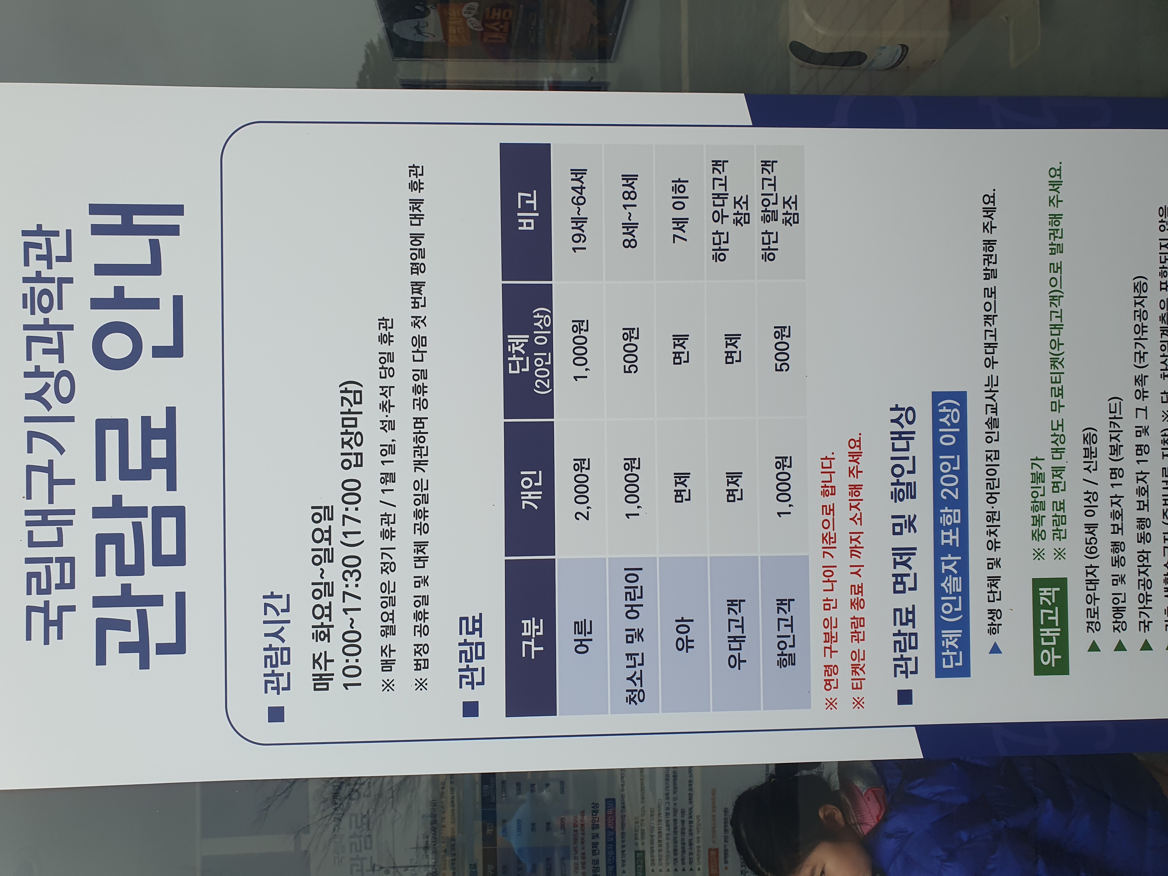 국립대구기상과학관은 국가에서 운영하는 거라 관람료가 저렴했습니다.