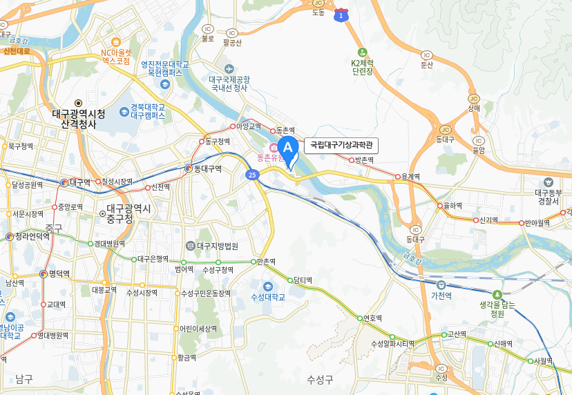 국립대구기상과학관은 대구시 동구에 위치해 있습니다. 주차장이 넓어서 많은 차들도 다 수용가능했습니다.