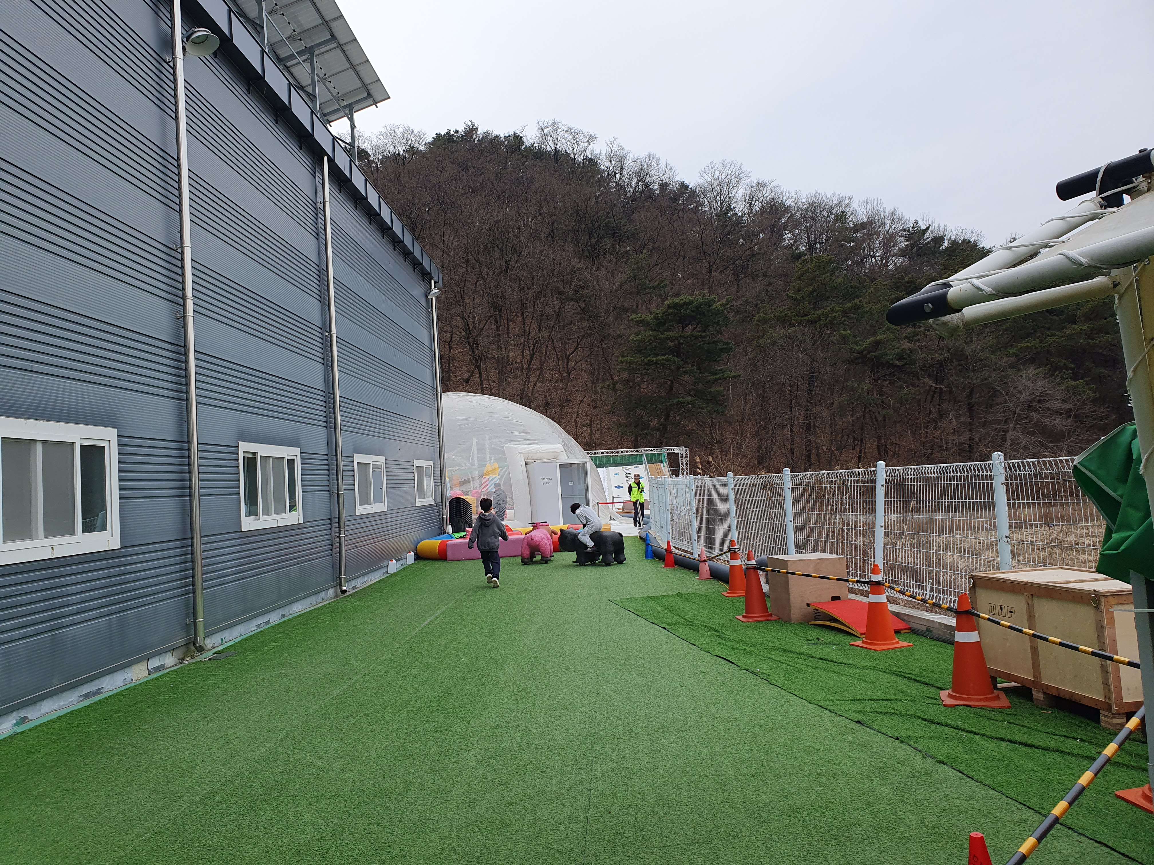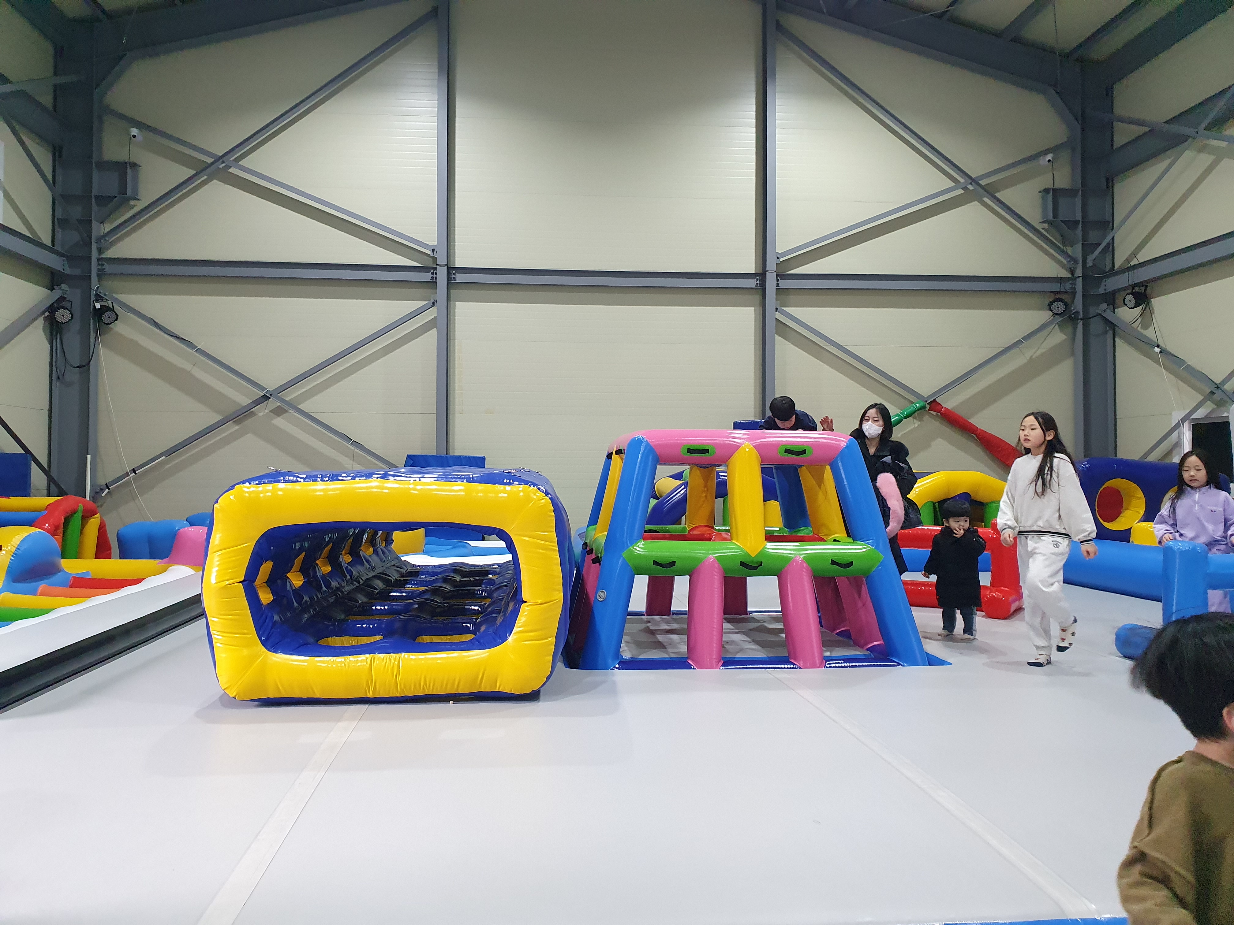 주차장은 넓고 놀이시설 바로앞에 있어 전혀 불편함이 없습니다. 놀이시설은 큰 공장 건물 두동에 각각 있고 실외에도 여러 놀이 시설이 있습니다. 실외에 있는 놀이시설도 비닐 하우스 처럼 생긴 돔안에 있어서 전혀 춥지 않습니다.