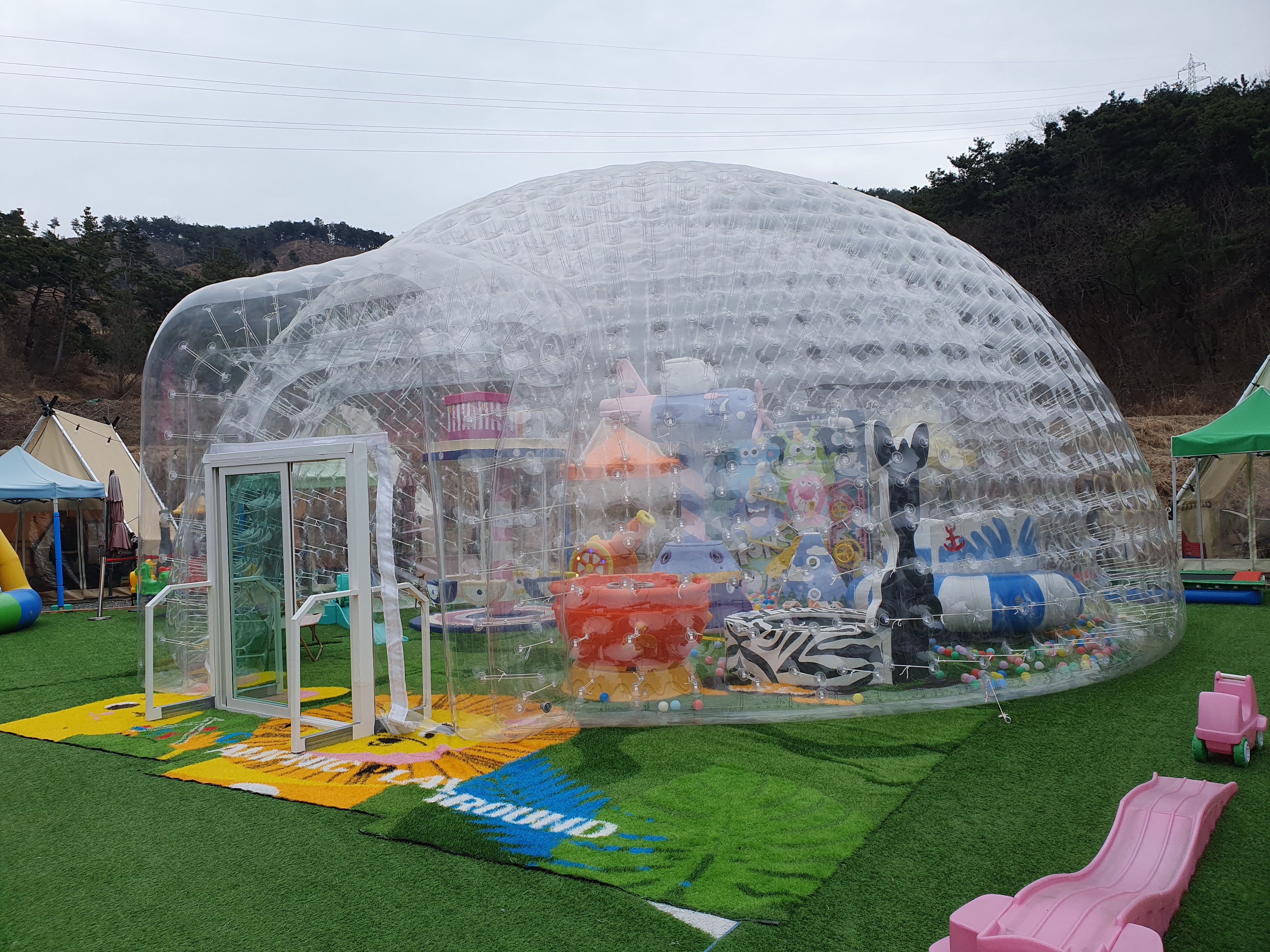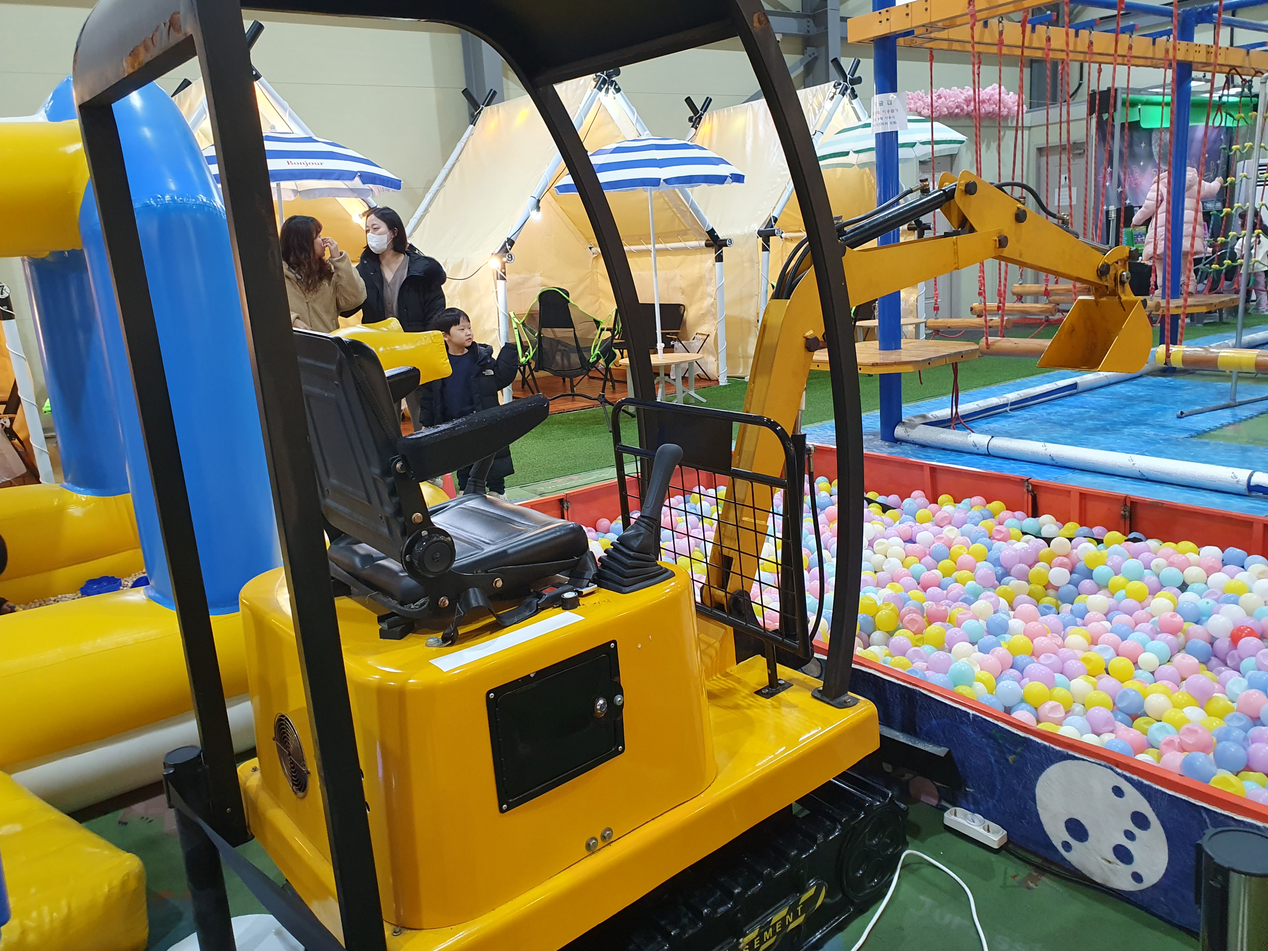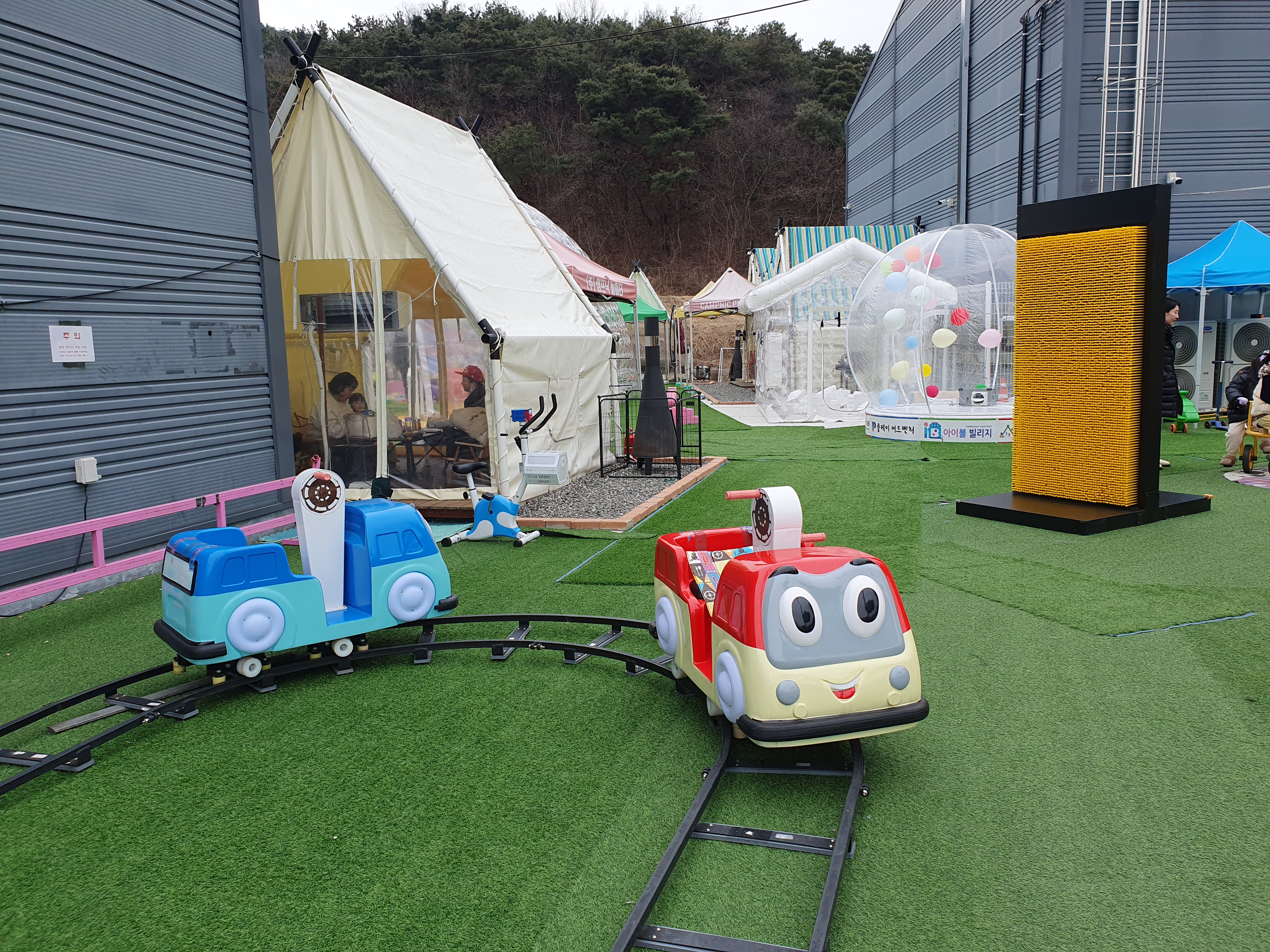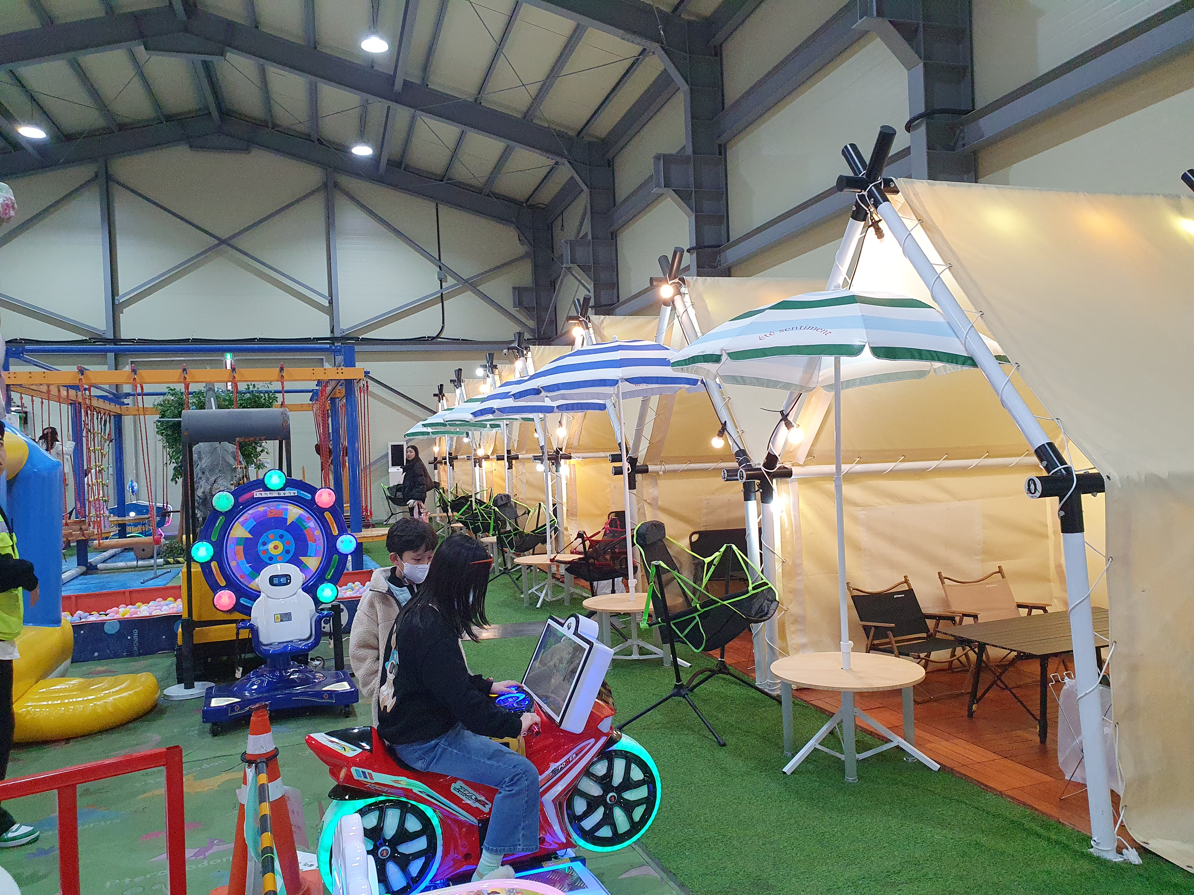 키즈카페보다는 크고 놀이공원보다는 작은 규모였는데 방문자 별로 캠핑장처럼 독립적인 공간이 있어 하루종일 시간을 보내며 즐길수 있어 너무 좋았습니다.