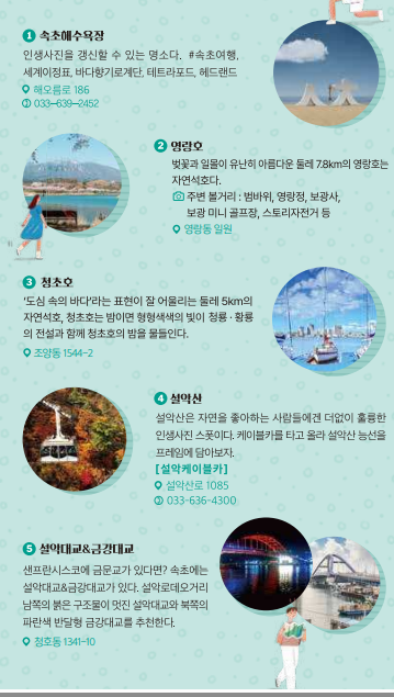 아름다운 경치를 구경할 수 있는 속초 주요관광지는 아래와 같습니다.