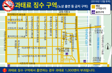 교토에서 주의하실 점은 아래구역에서 흡연을 하는 경우 과태료가 징수 되니 조심하셔야 합니다.