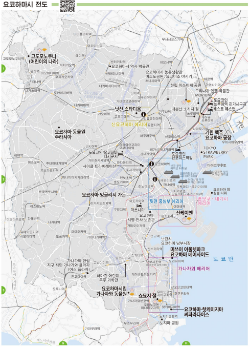 아래 지도는 요코하마 주요 관광지가 표시된 지도입니다.
