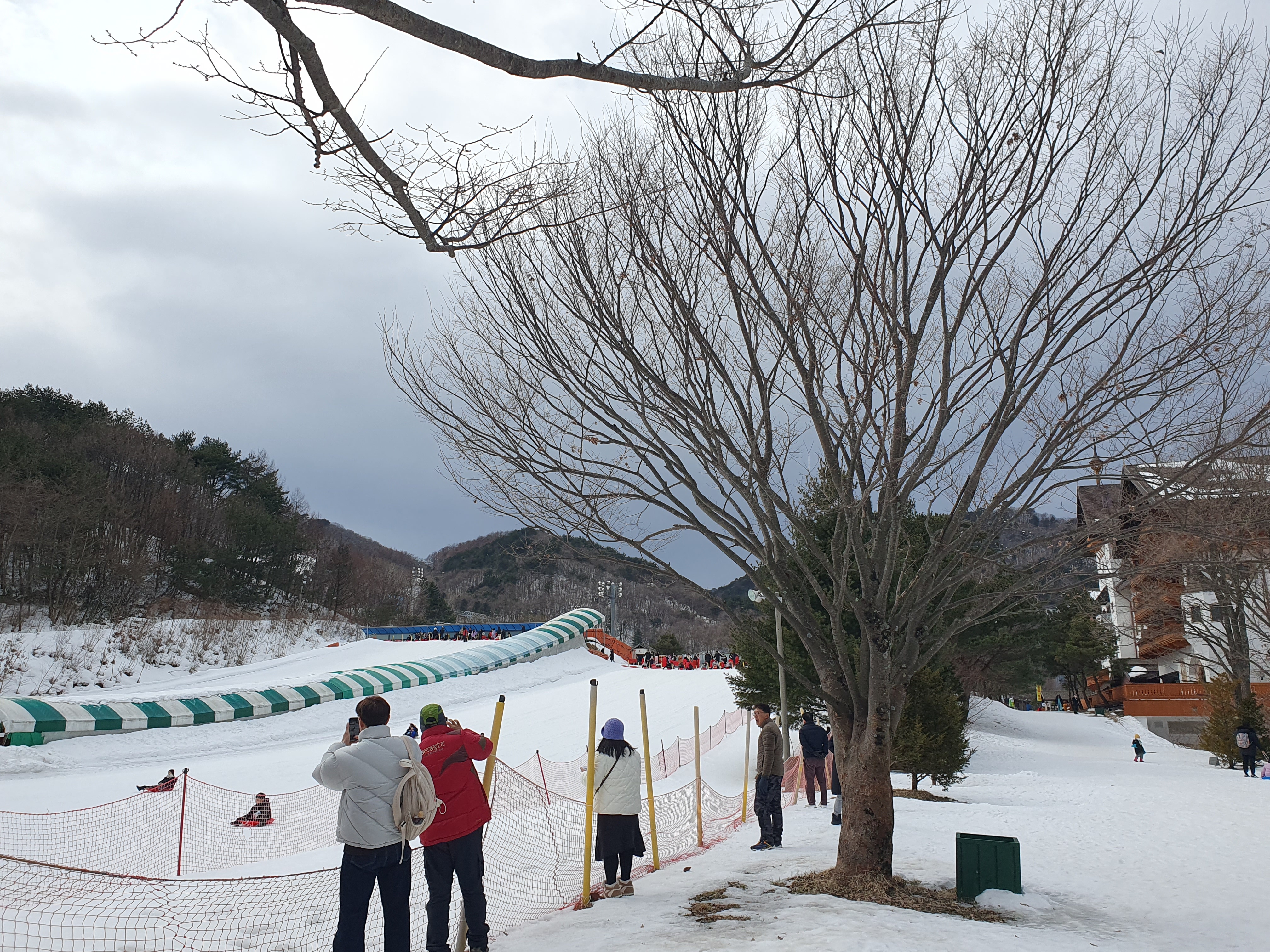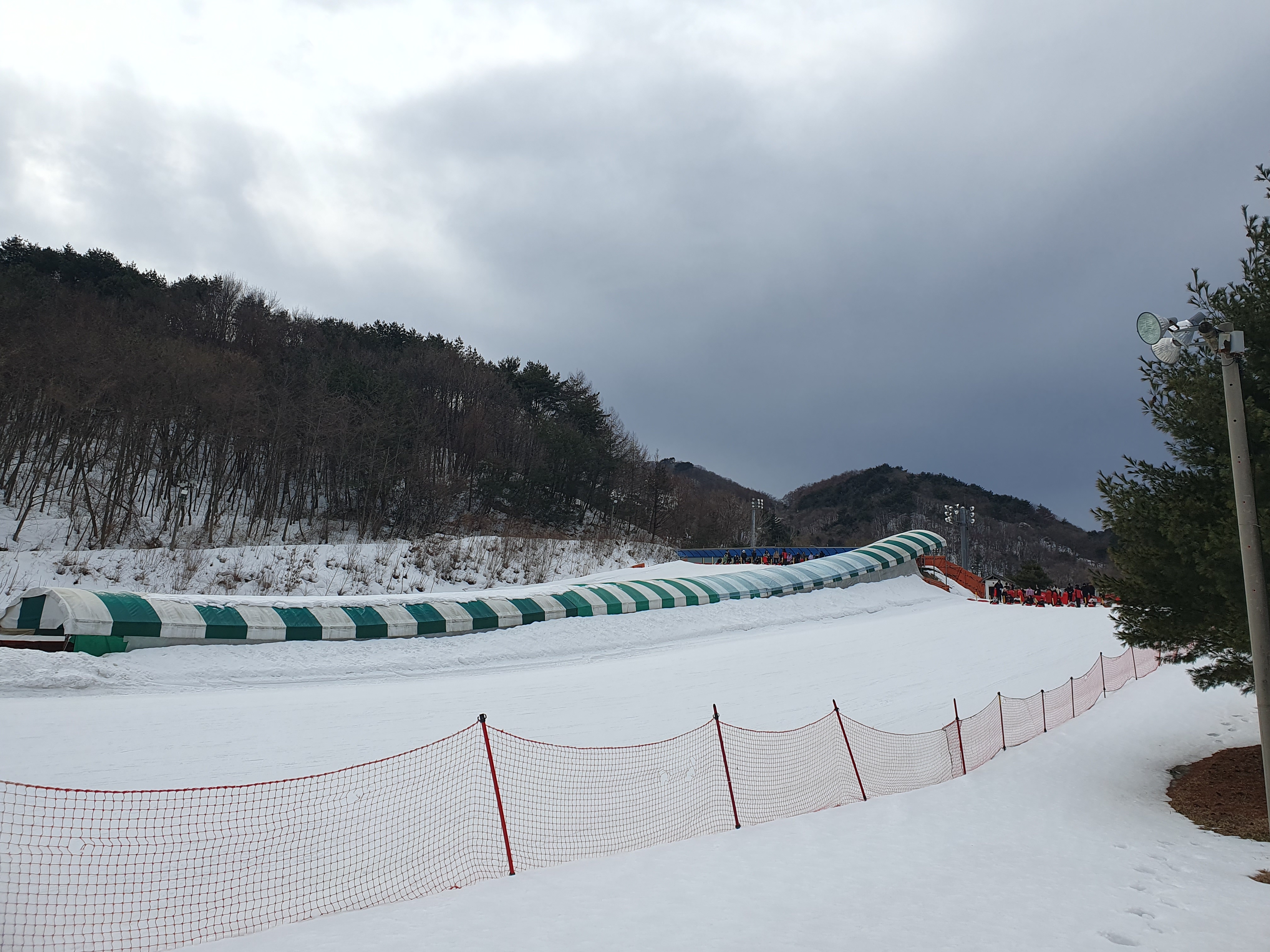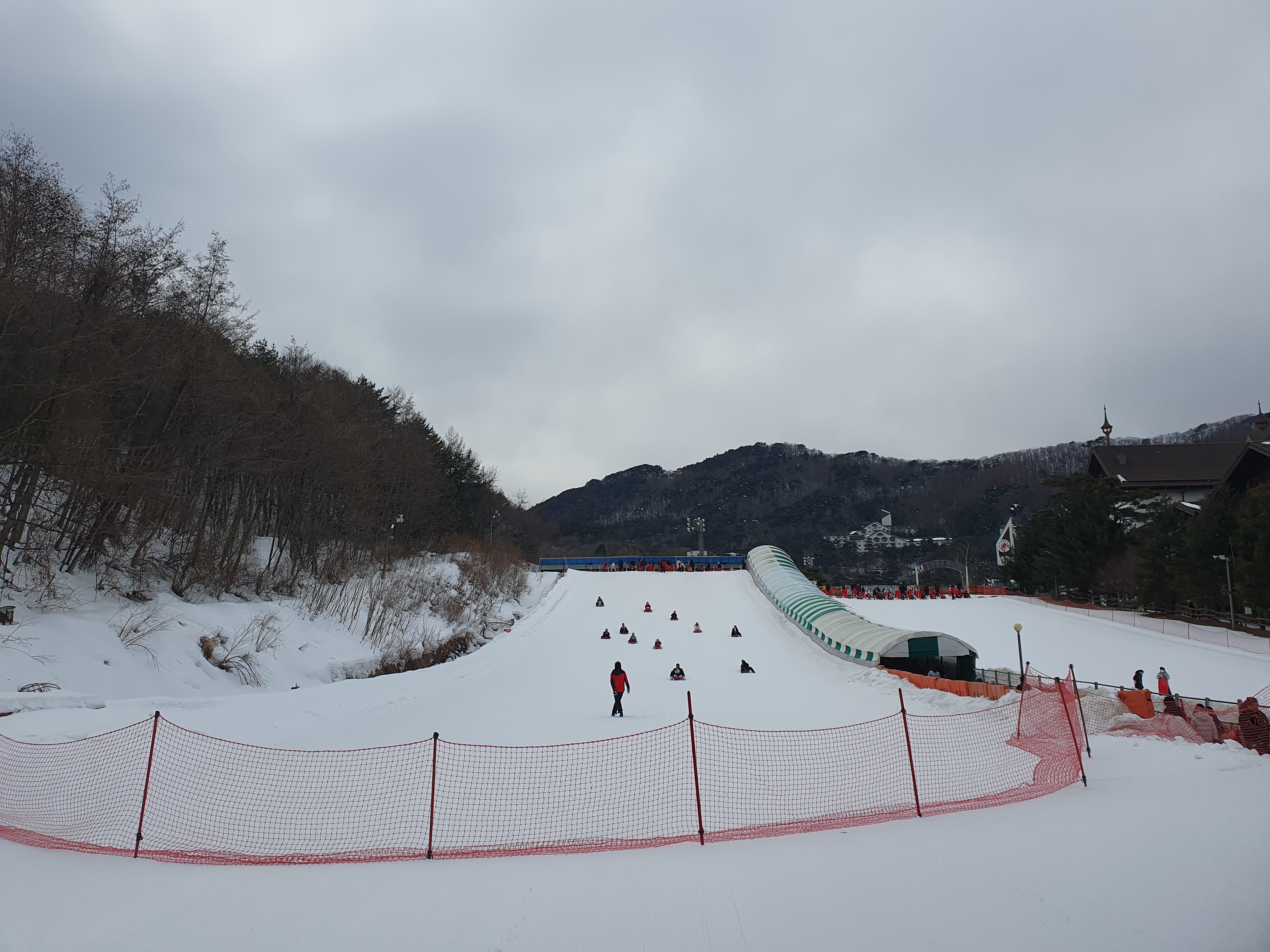 눈썰매장은 크게 두개로 운영하고 있었습니다. 경사가 높은 곳과 낮은 곳이 있는데 아이들 키에 따라 골라서 탈 수 있었습니다.