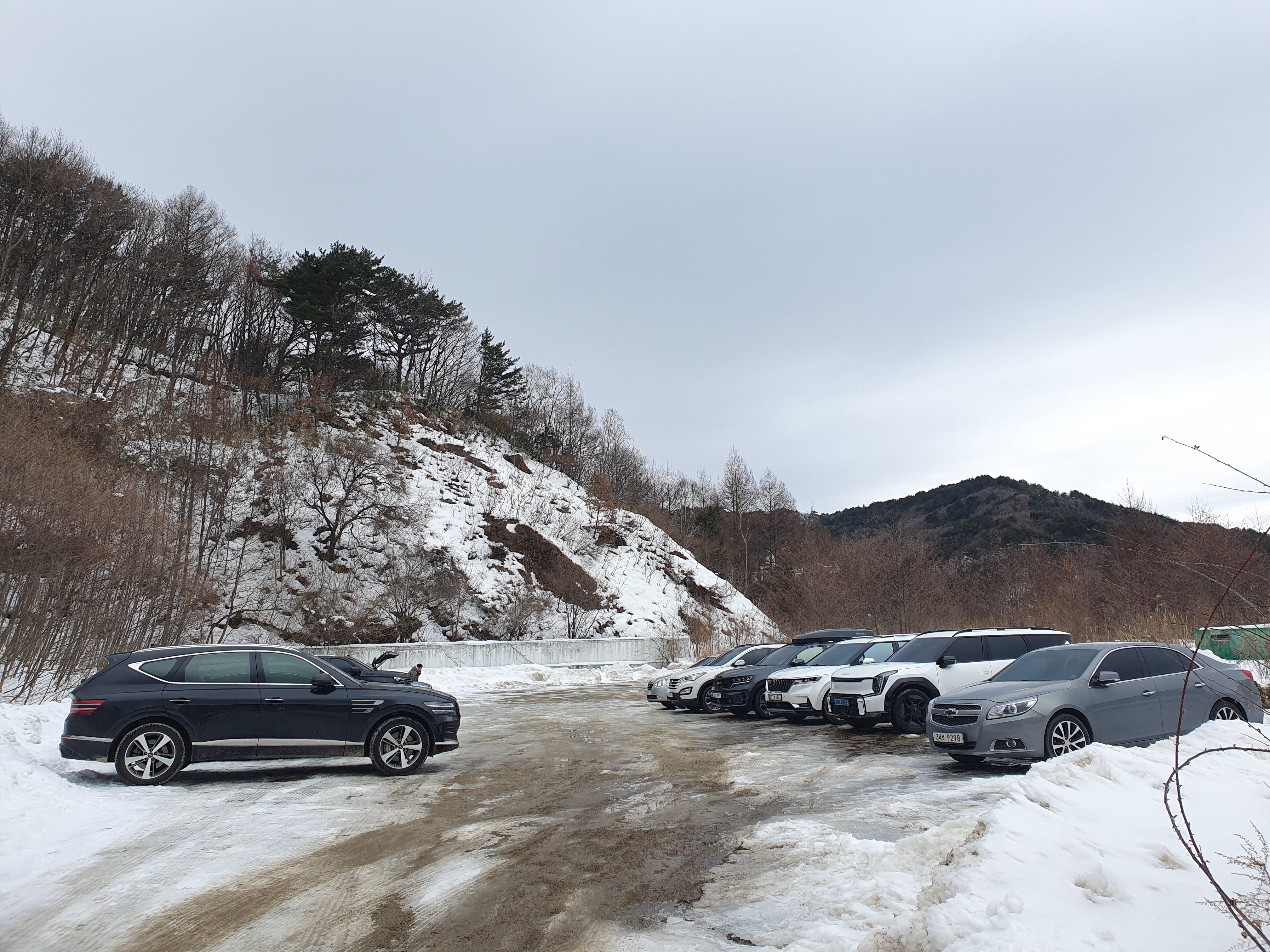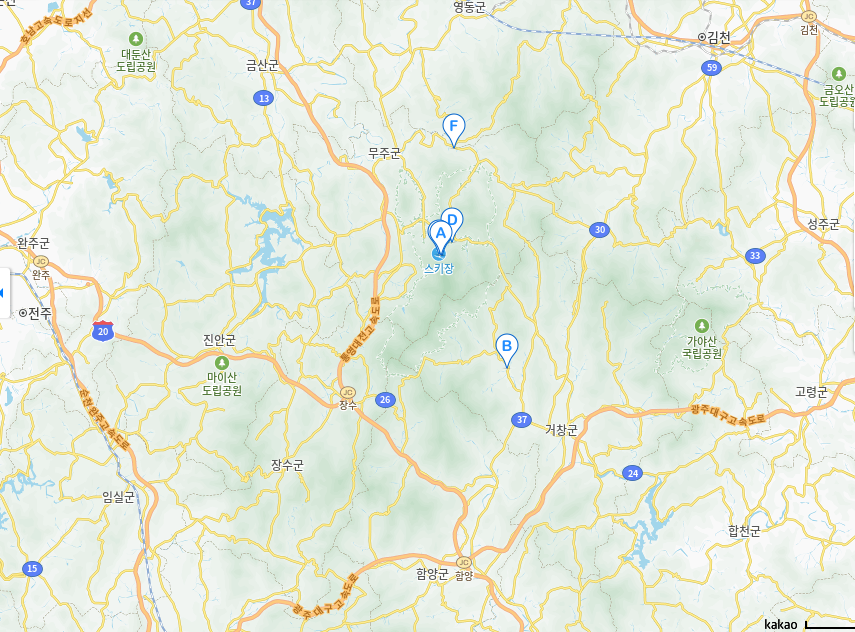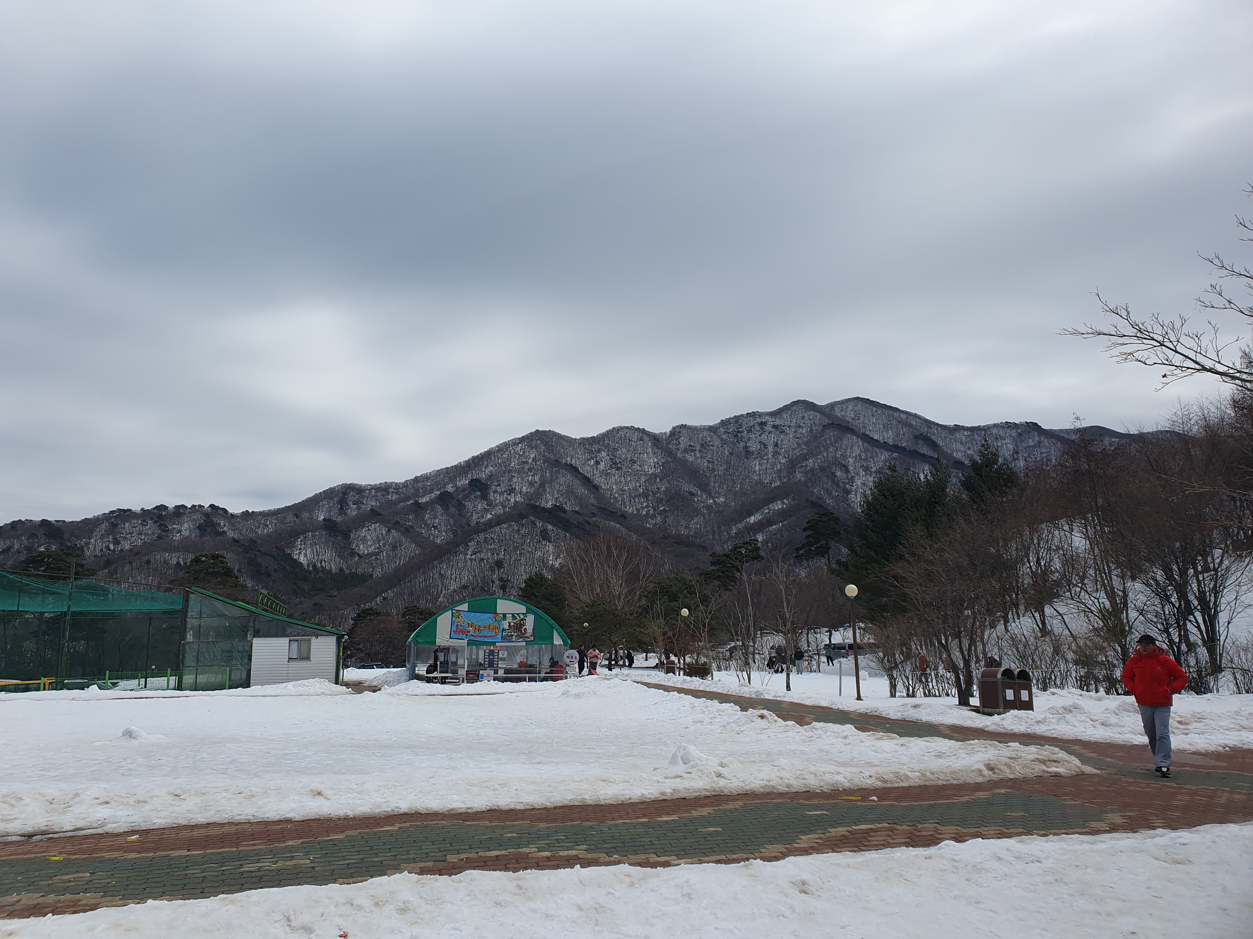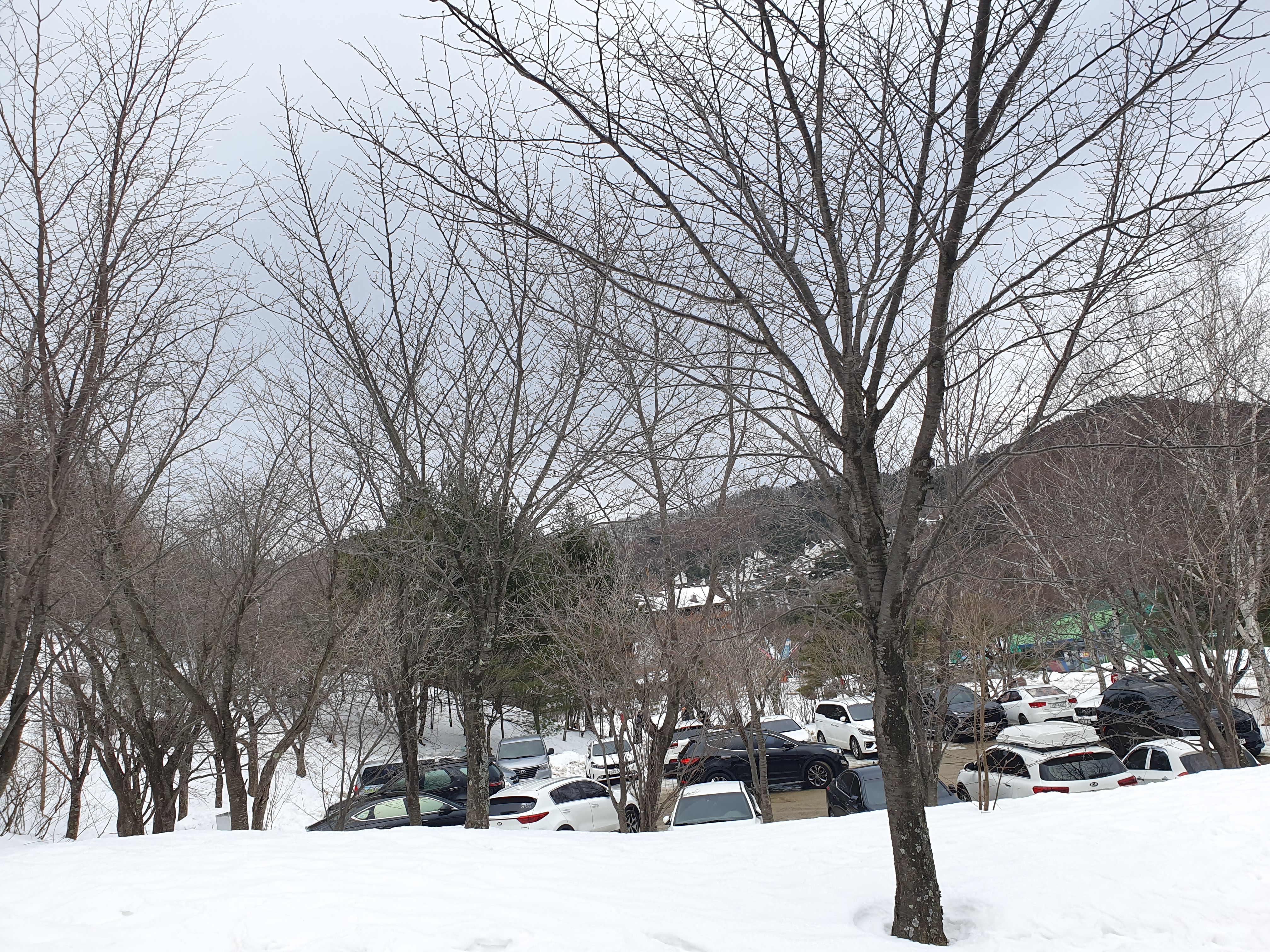 다른 스키장보다 아래지방에 위치해서 눈이 많이 녹았으면 어떡하나 걱정했었는데 신기하게도 무주에 들어서자마자 산에 덮인 많은 눈들이 보였습니다.