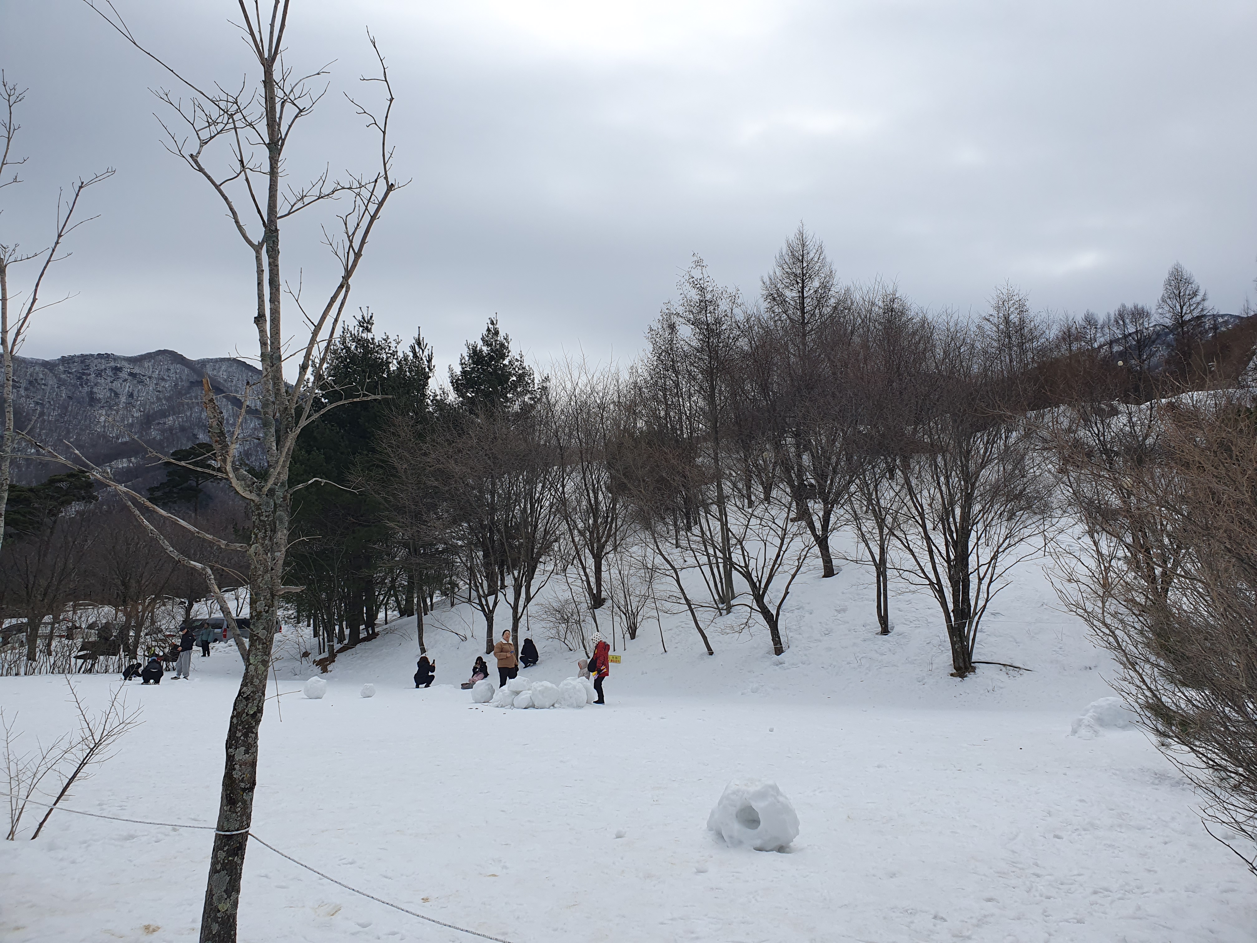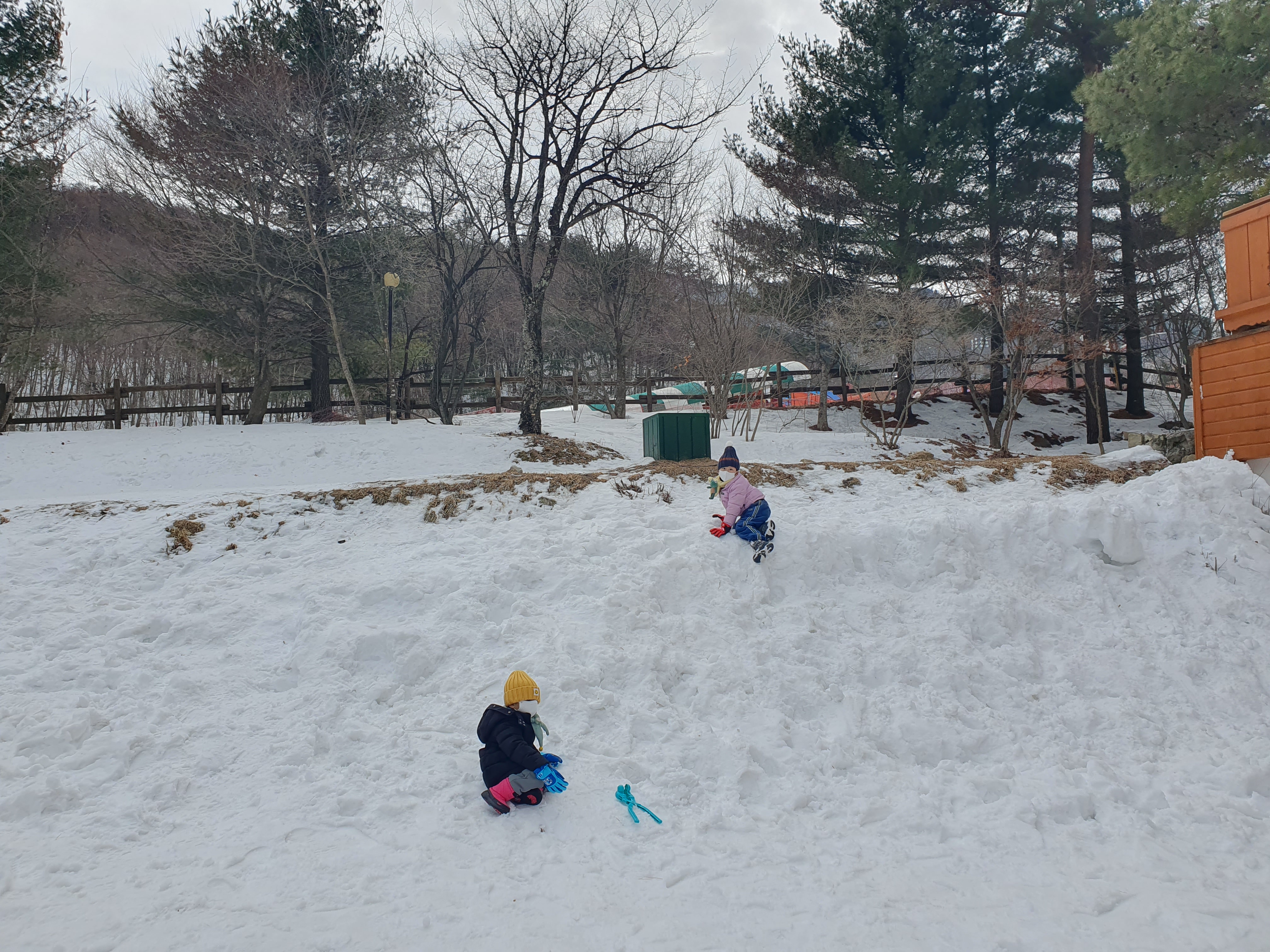 썰매장 주변으로 눈 쌓인곳이 많아 어린아이들은 굳이 썰매를 타지 않더라도 썰매장옆에서 충분히 놀 수 있는 공간들이 많았습니다.