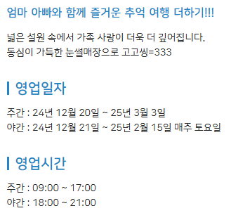 무주 눈썰매장은 3월3일까지 운영된다고 합니다.