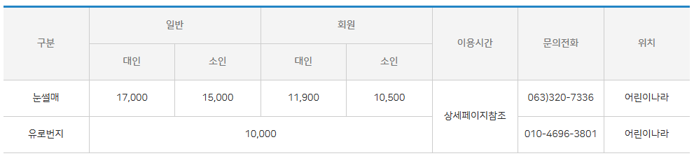 무주 눈썰매장 이용요금은 아래와 같습니다.
