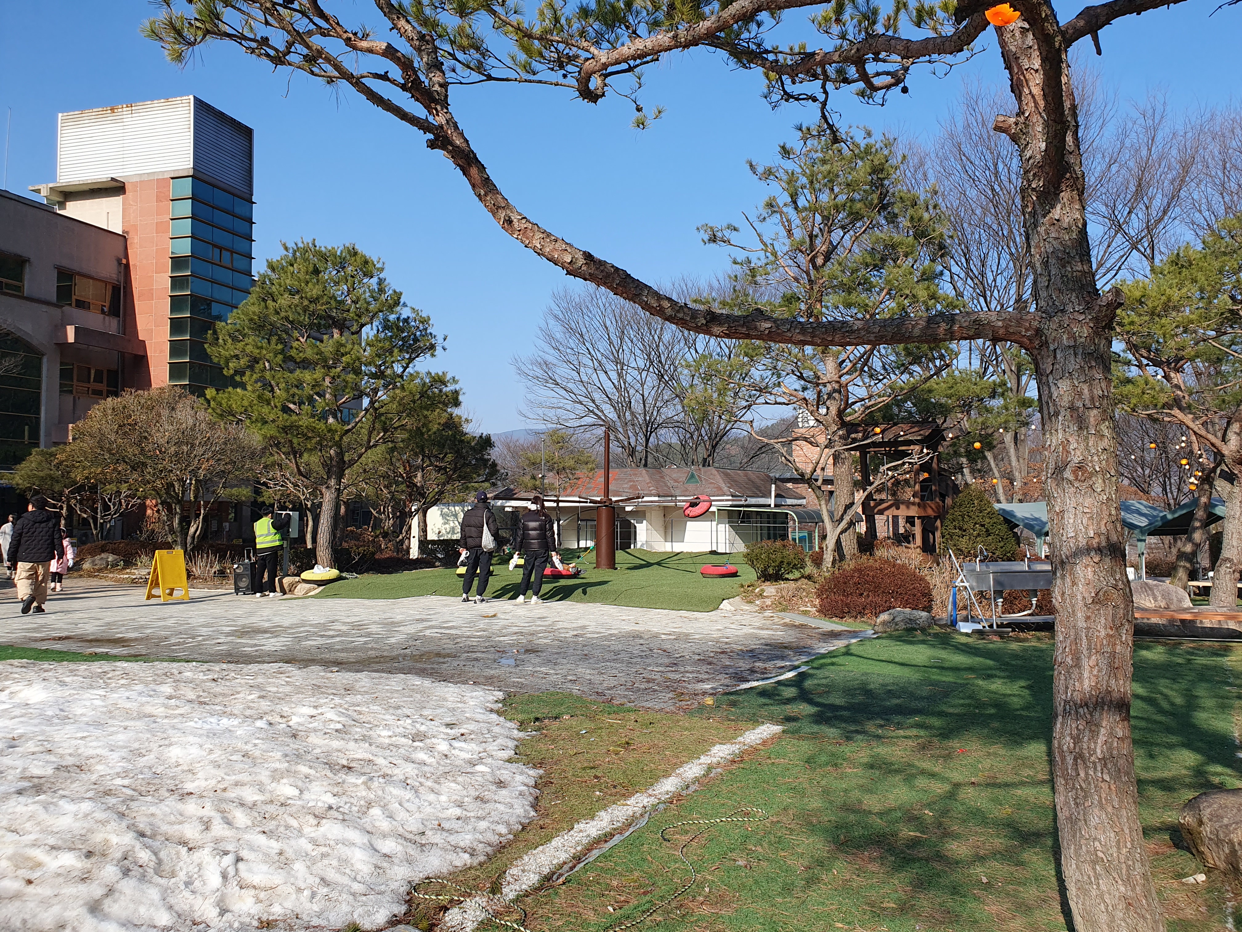 커피숍 아래에 있는 눈놀이터는 눈썰매를 탈 수 있는 공간이 있습니다. 아빠들이 고생하는 만큼 아이들이 즐거워 할 수 있는 곳입니다;;;