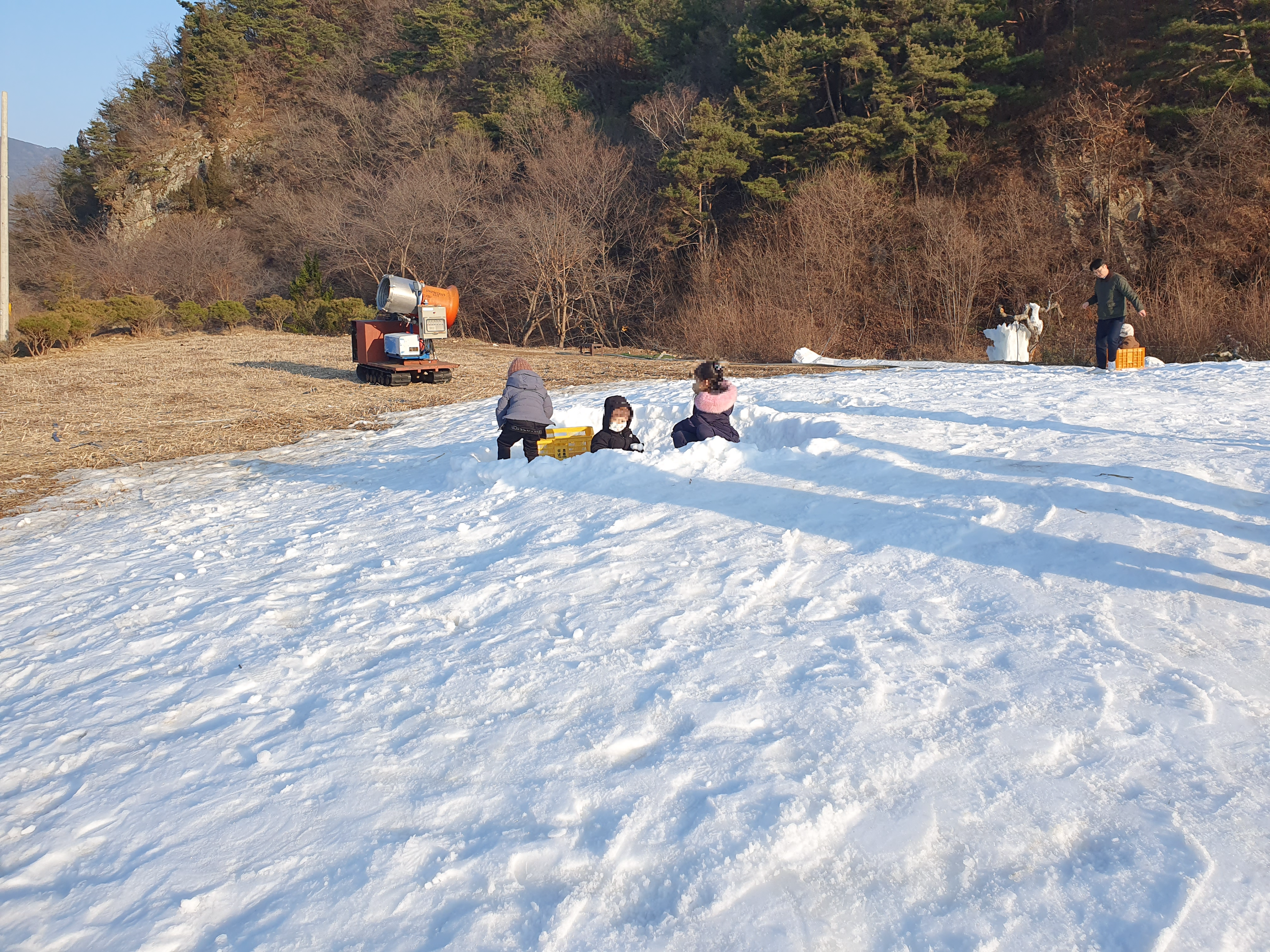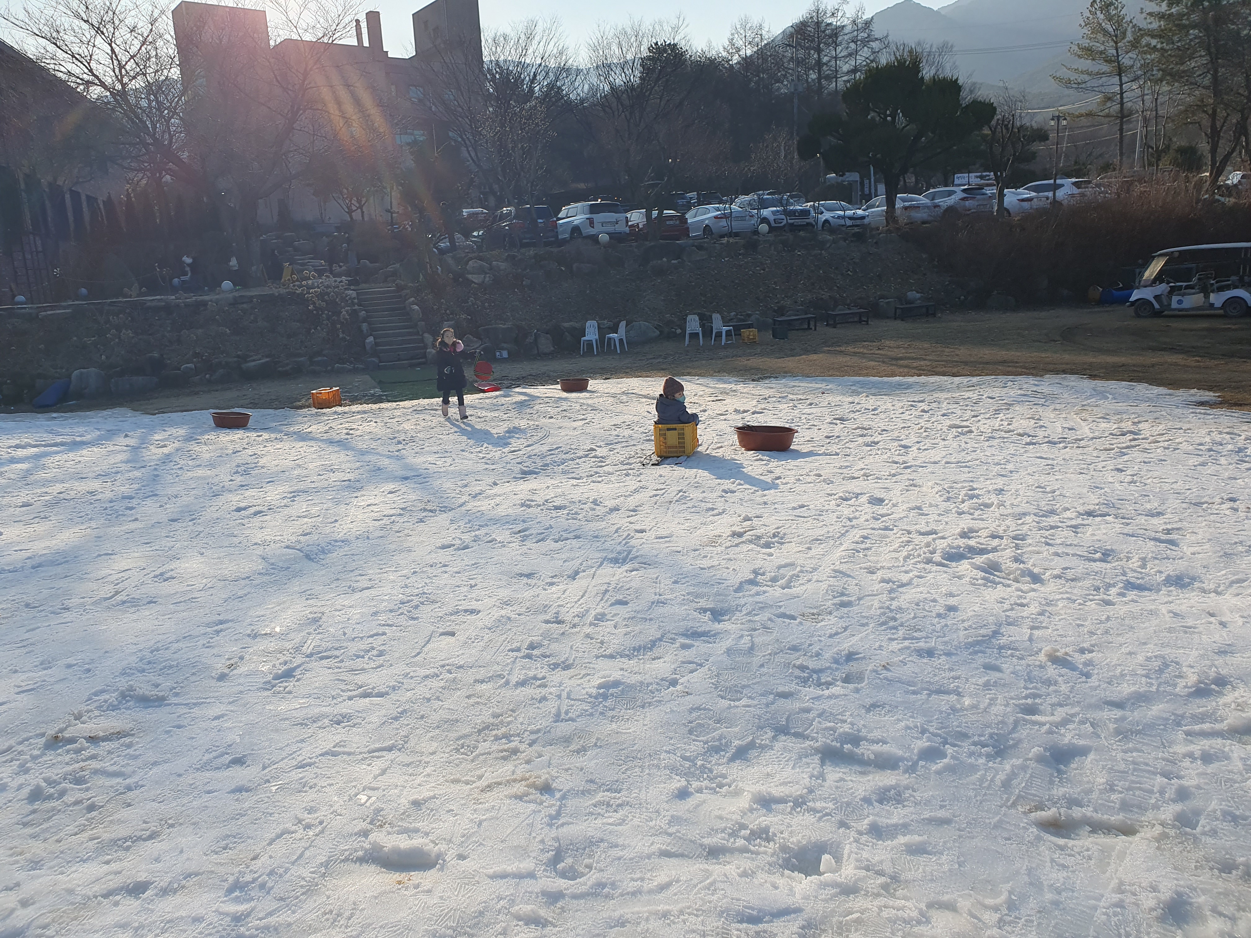경사진 곳에서 탈 수있는 눈썰매장이 있습니다. 경사가 그리 높지는 않아 작은 아이들도 즐길 수 있습니다.