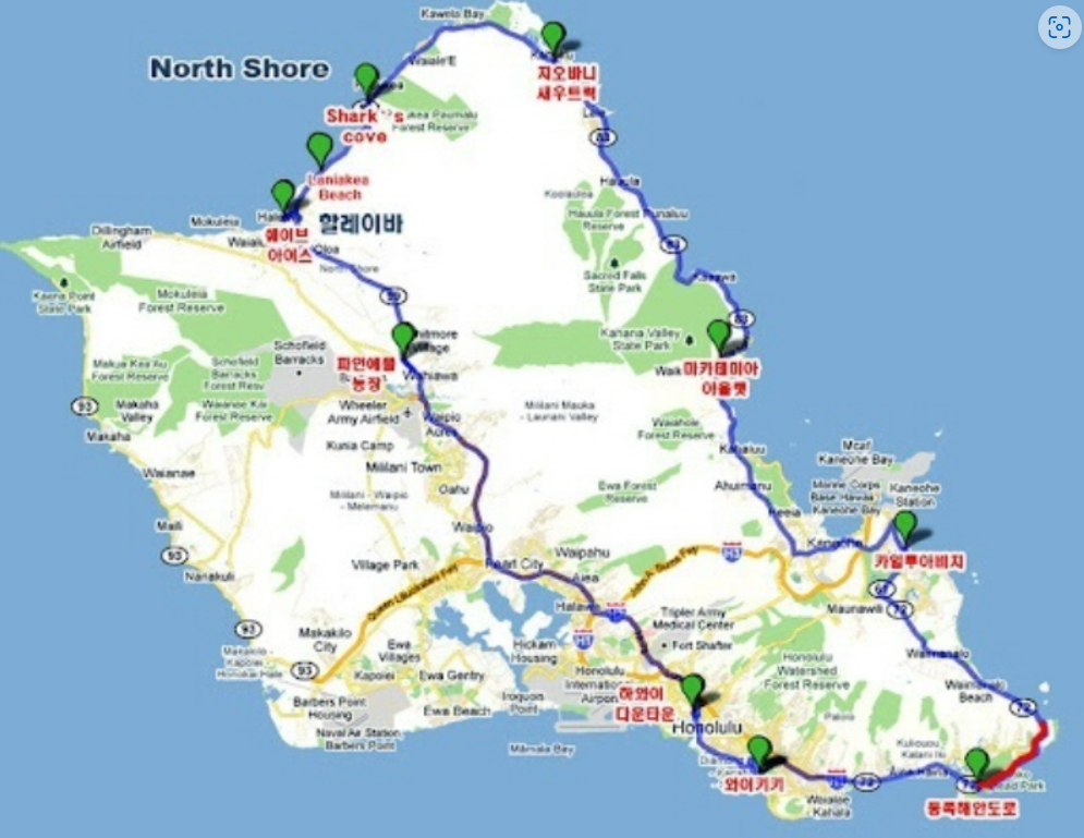 하와이 오하우 여행코스 지도는 아래와 같습니다.