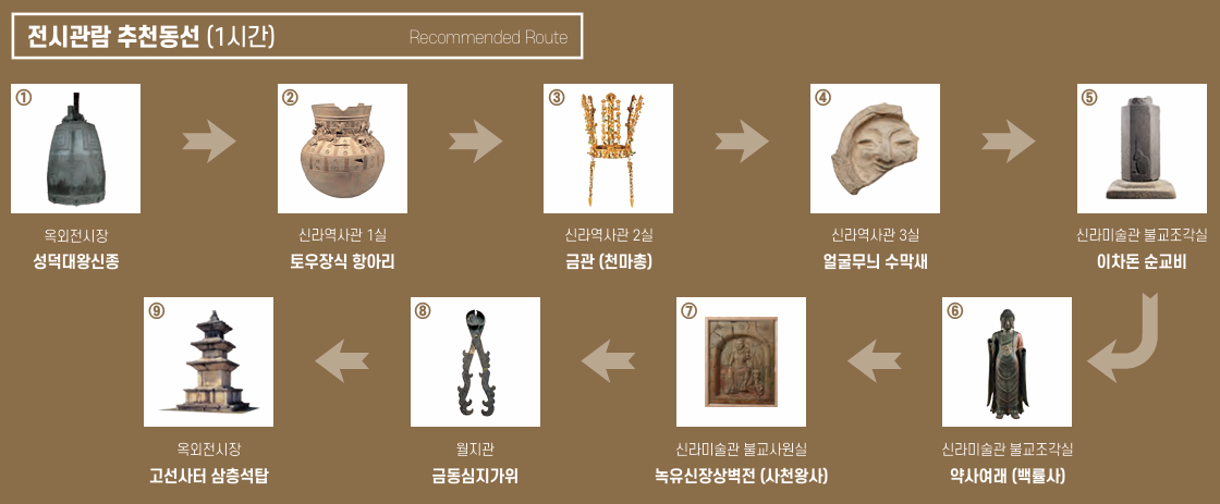 경주국립박물관이 넓어서 관람동선을 잘 생각하셔서 보시는게 좋습니다. 경주국립박물관에서 추천하는 관람동선을 참고하시기 바랍니다.