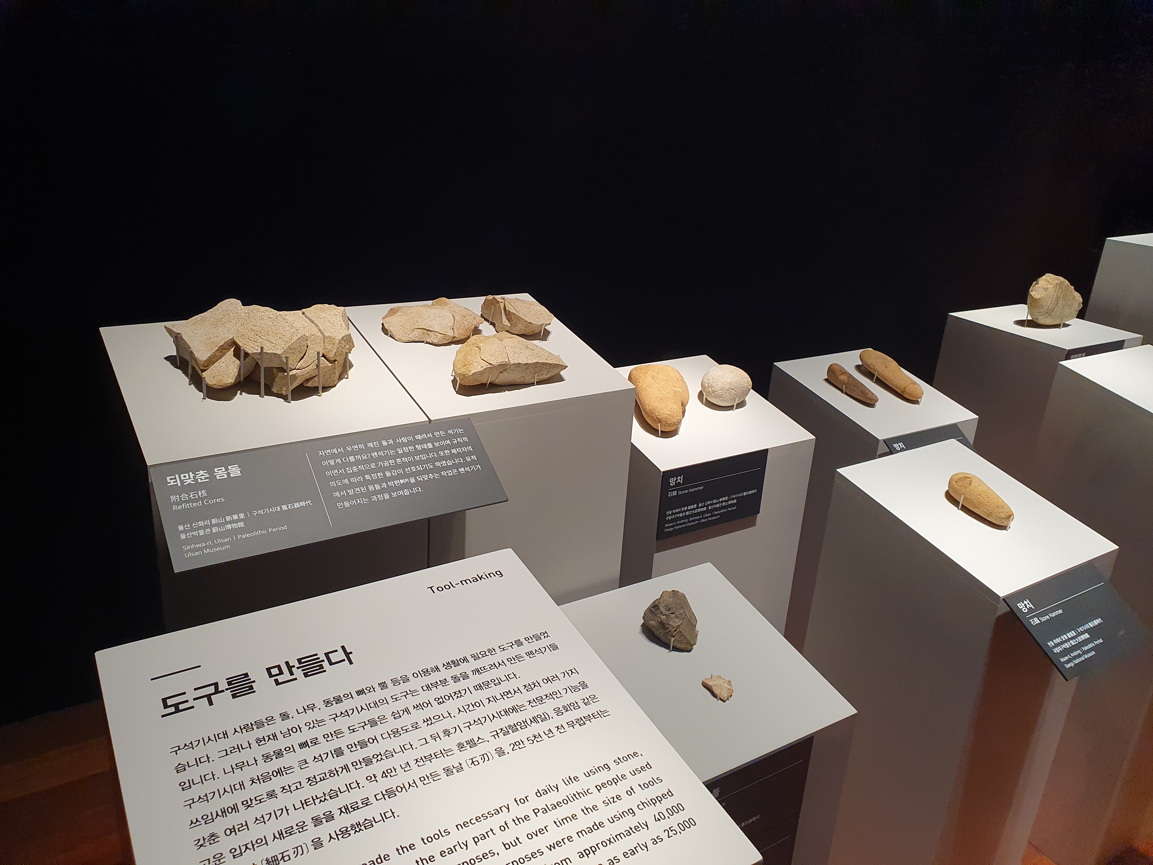 경주국립박물관 전시실 실별로 시간의 순서대로 유물들이 전시되어있습니다.