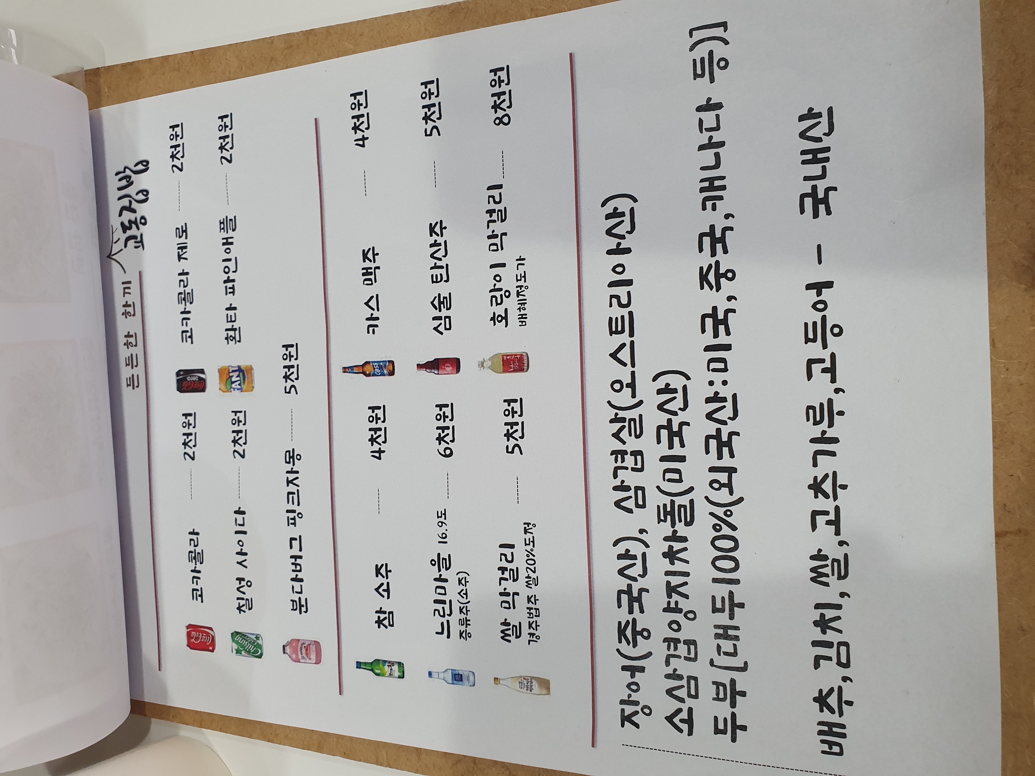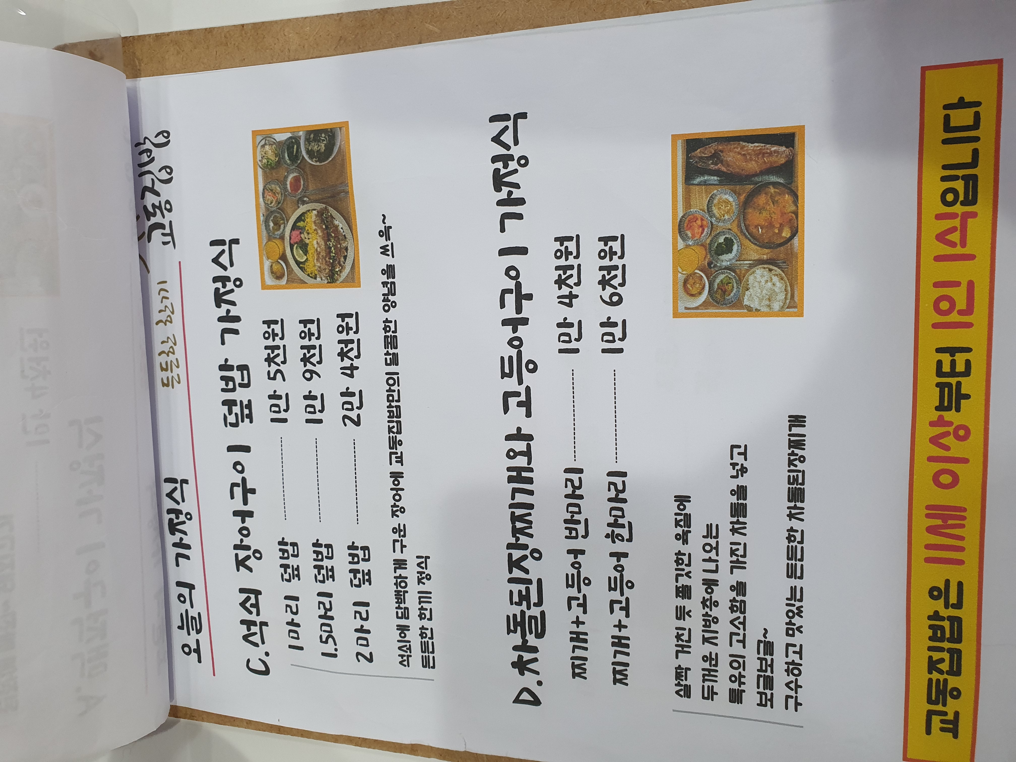 경주 교동집밥 메뉴판입니다.(세번째 사진 보시면 미취학 아동에게 공짜로 주는 음식이 나와있습니다)