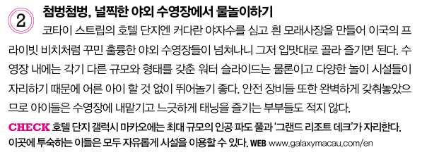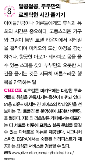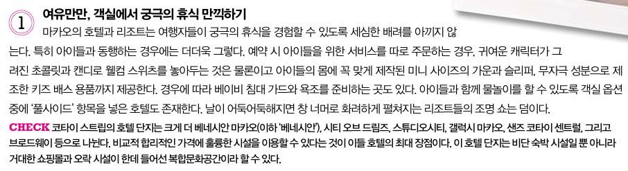 세계에서 가장 유명한 카지노 여행지로 알려지 마카오는 카지노 외에도 동서양 문명이 조화롭게 같이 공존하는 매력적인 관광지입니다. 레저, 호텔 숙박시설도 발달되어 가족들이 같이 여행하기 좋은 곳이기도 합니다.