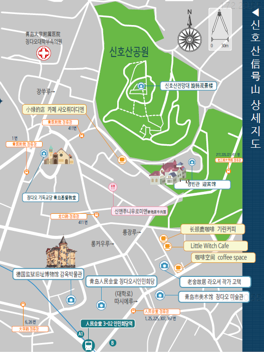 칭다오 신호산 상세지도입니다.