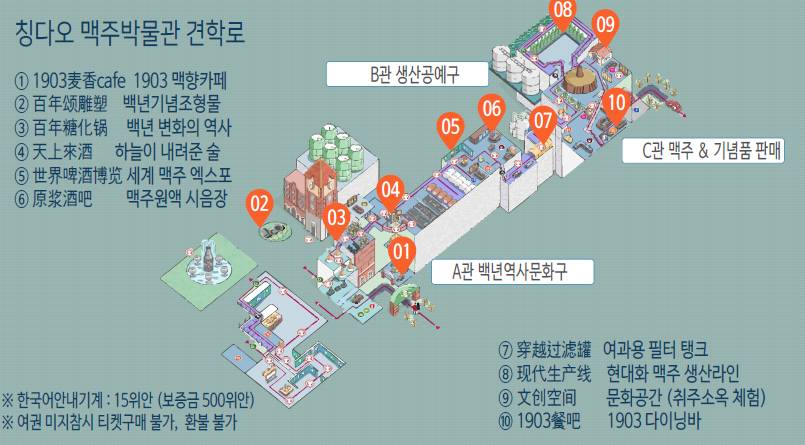 칭다오 맥주박물관 관람코스는 다음과 같습니다.