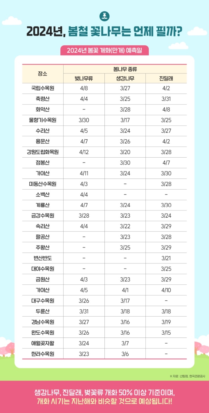 2024년 봄꽃 개화시기를 알 수 있는 봄꽃 개화현황서비스와 꽃놀이 명소를 소개해 드리려고 합니다.