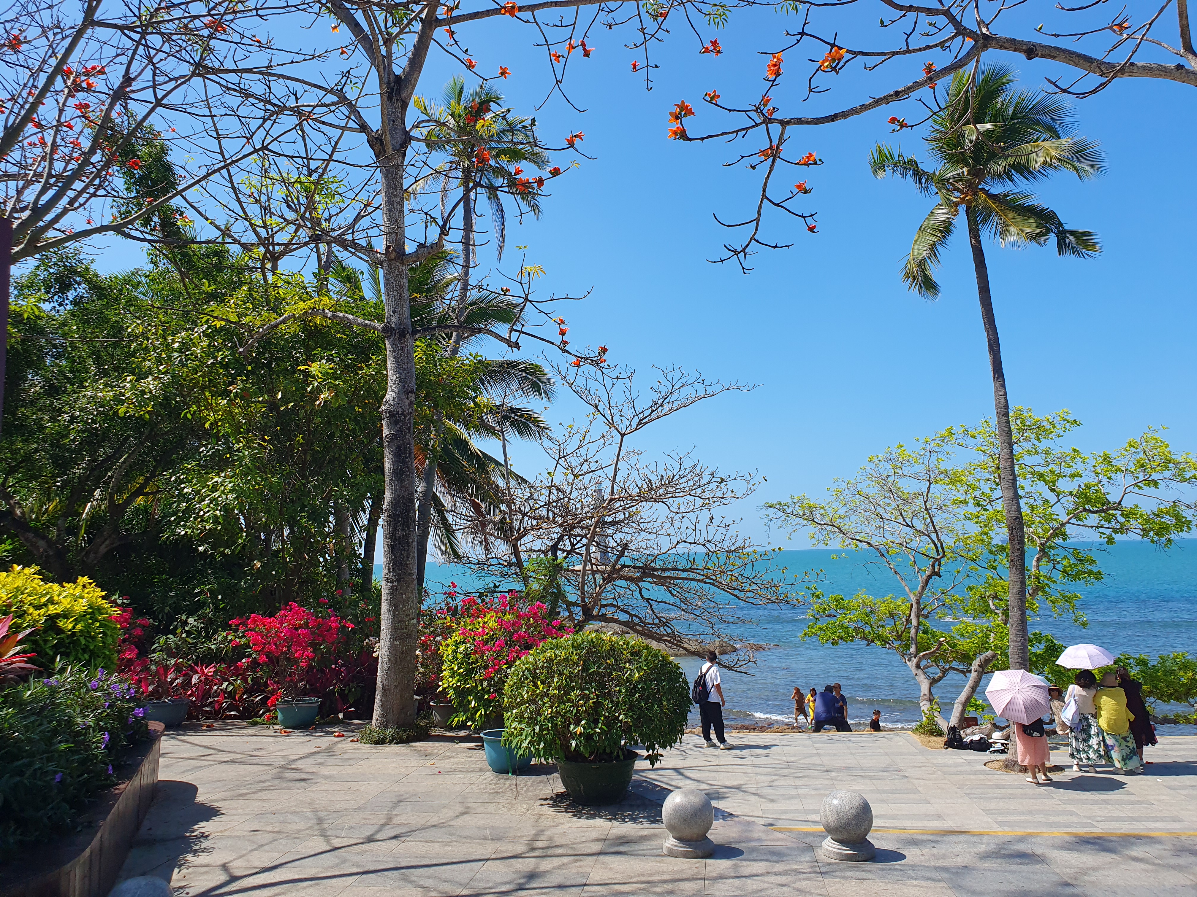 탁트인 바닷가에 아름다운 나무와 꽃들이 있어 너무 보기 좋았습니다.