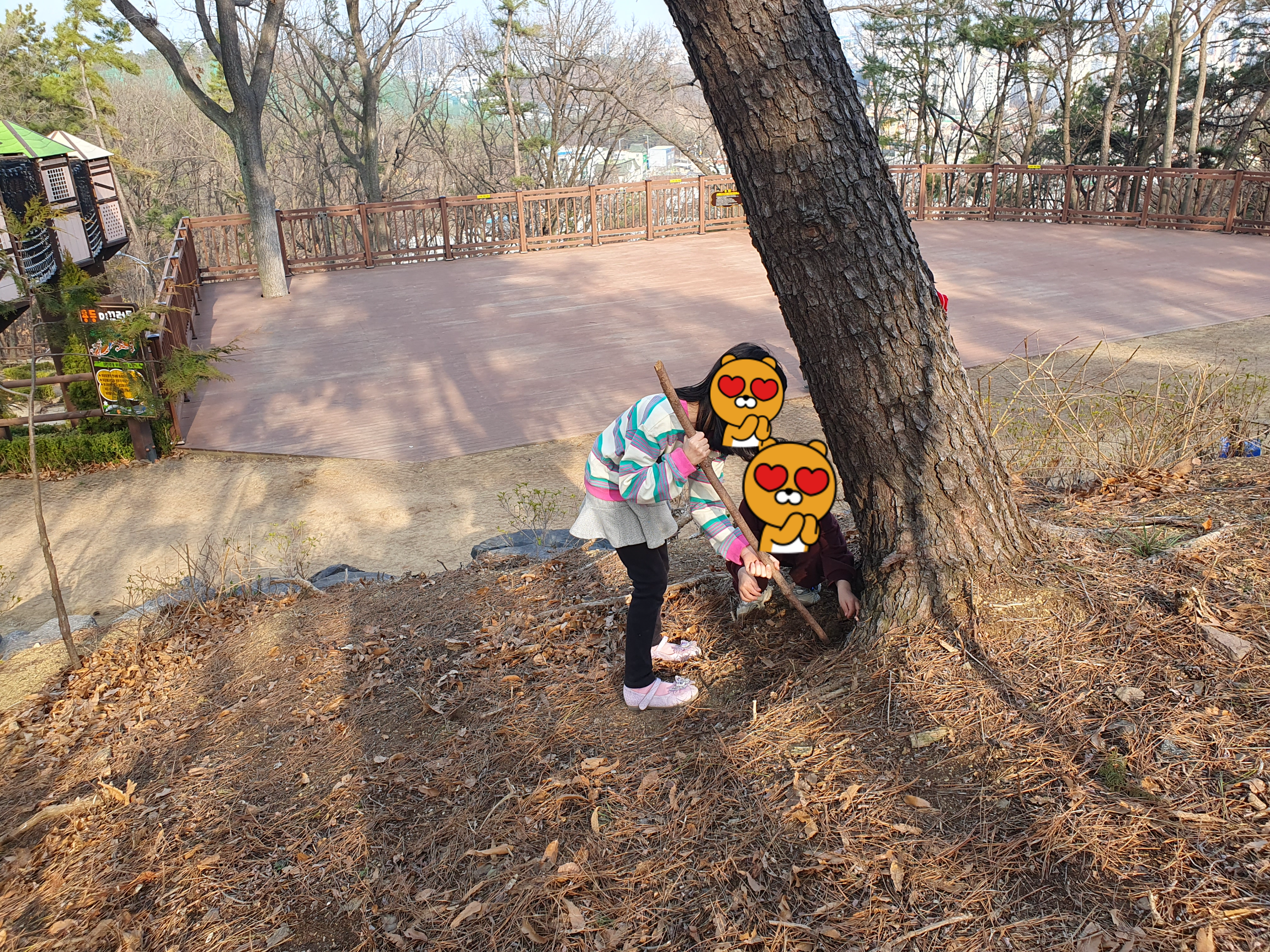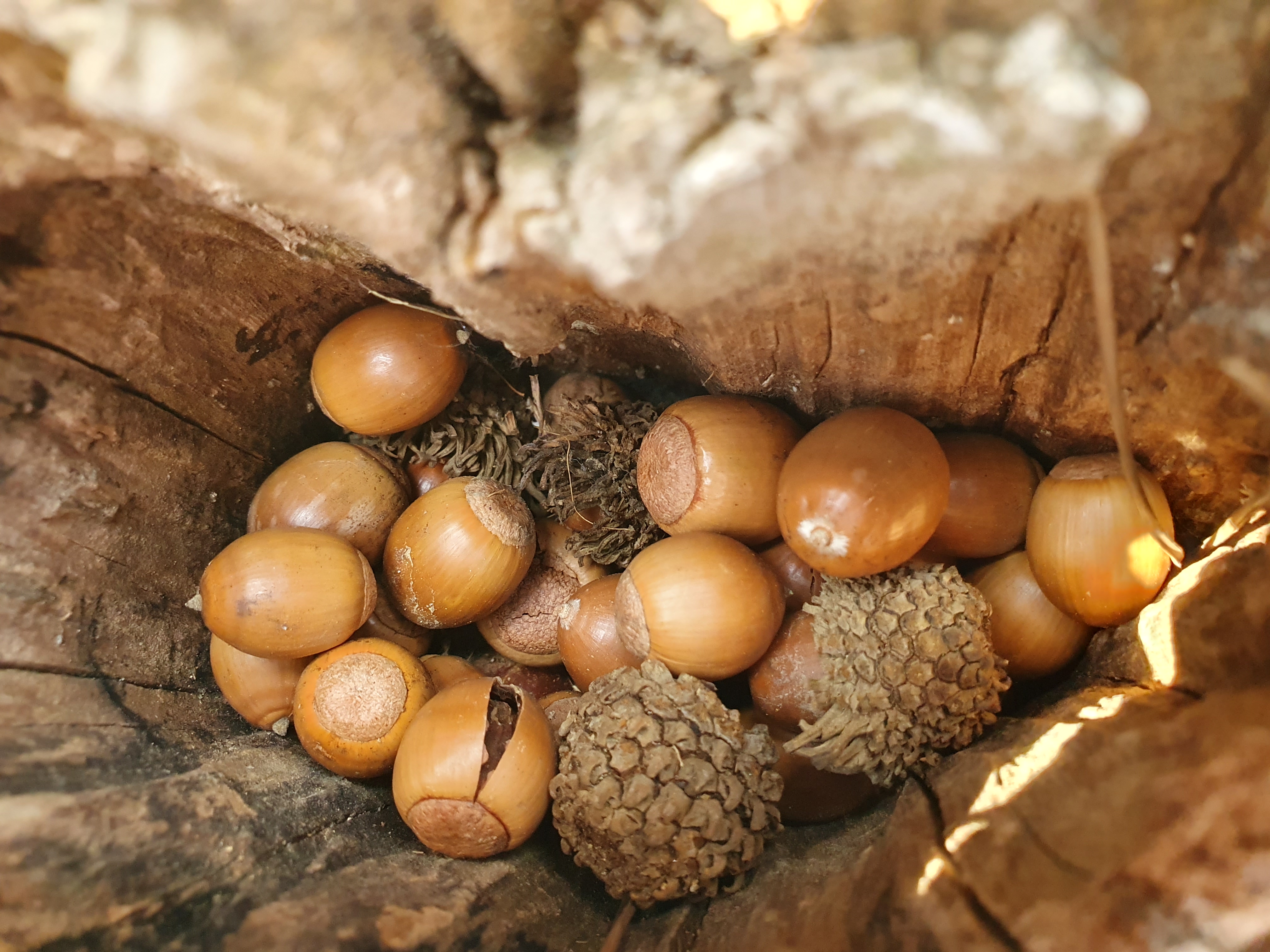 이 사진은 아이가 찍은 사진인데 다람쥐인지 모르겠지만 나무 틈 사이에 도토리를 모아 놓은것도 있었습니다.