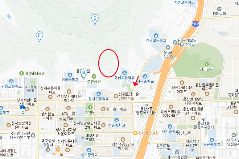 위치는 달서구 성산고등학교 가는길에 와룡산으로 올라가는 길이 있습니다.