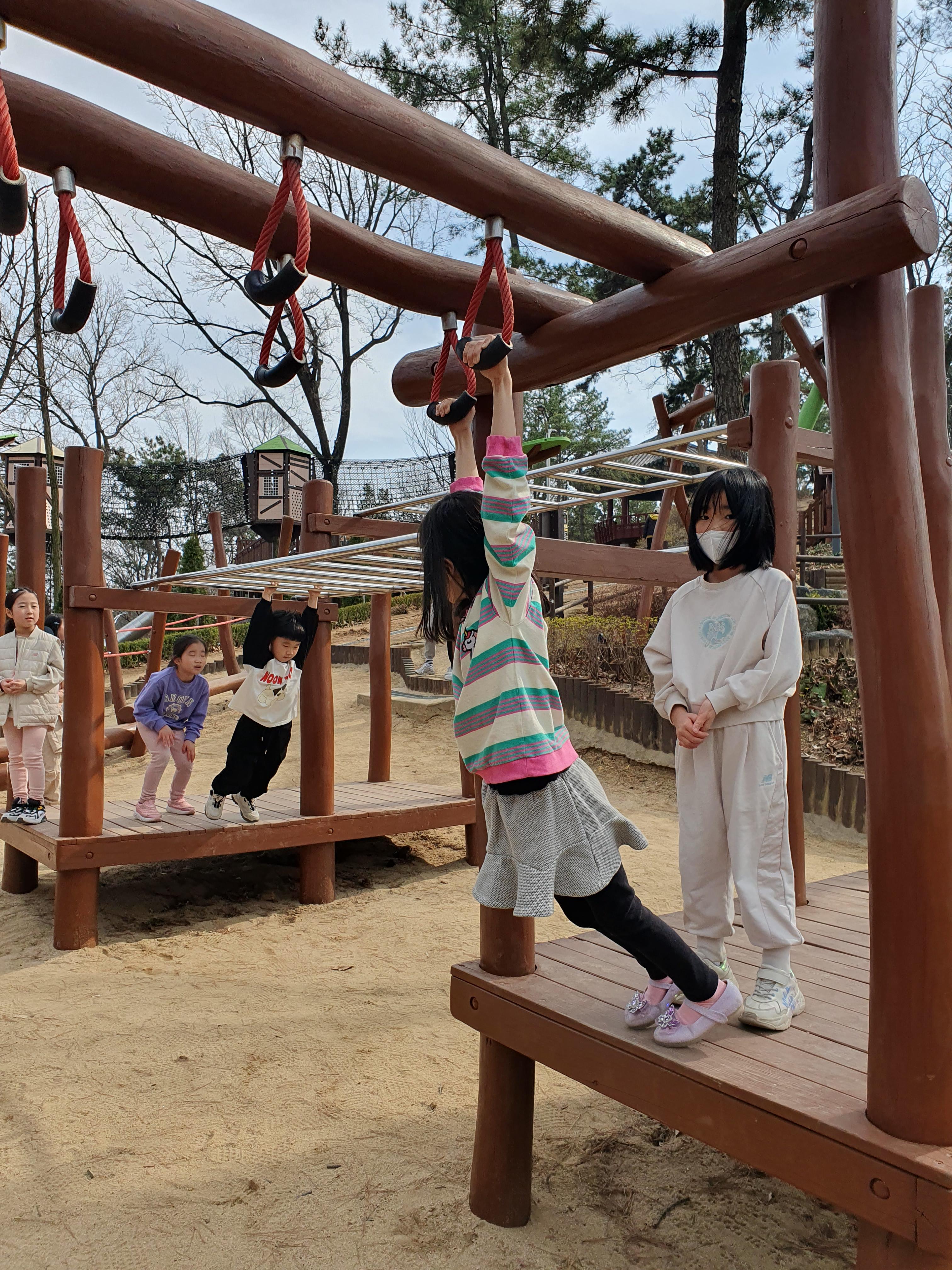 놀이기구들이 흙과 나무와 잘 어우러져 아이들이 자연속에서 신나게 놀수있는 환경입니다.