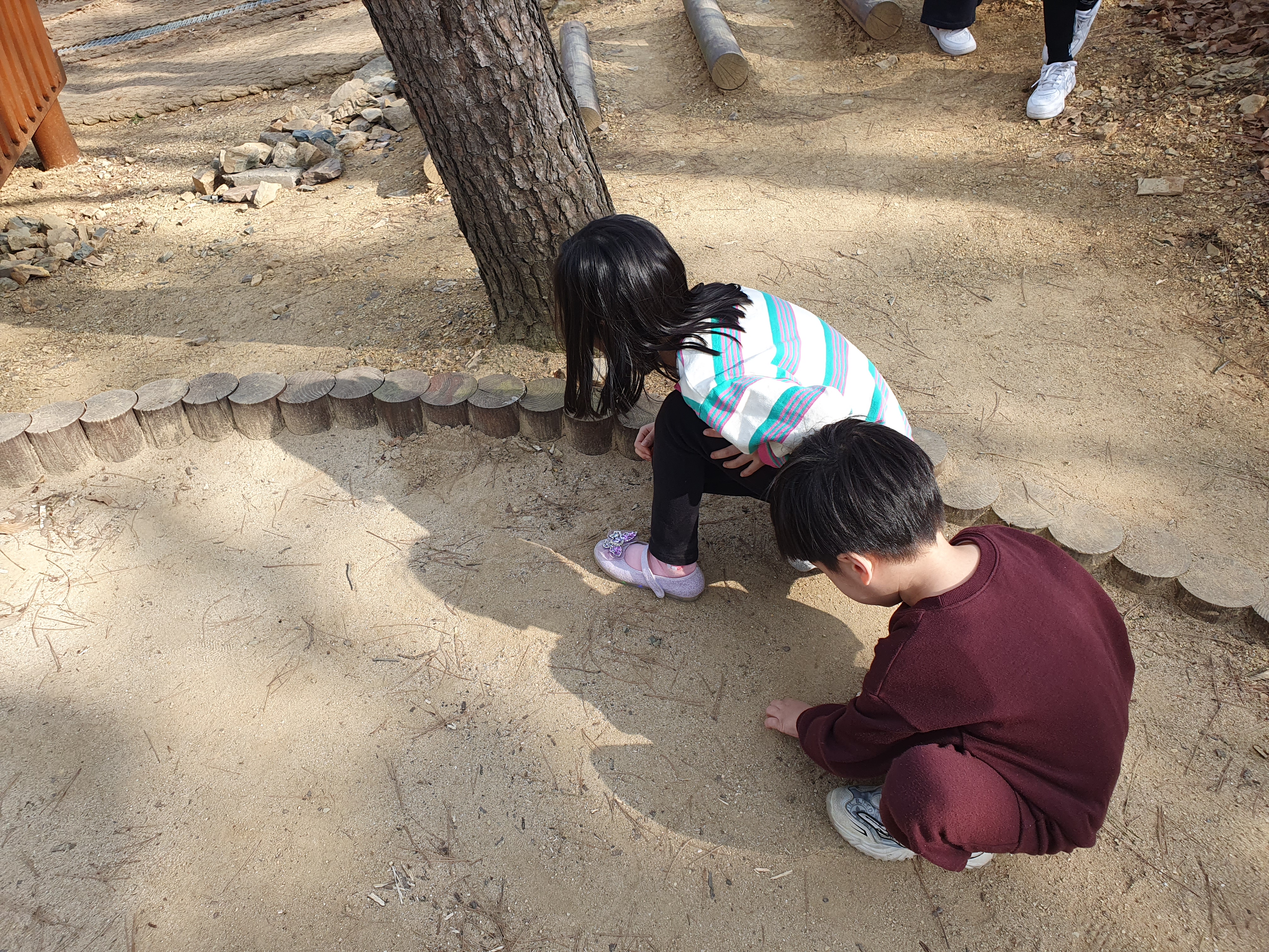 이 사진은 아이가 찍은 사진인데 다람쥐인지 모르겠지만 나무 틈 사이에 도토리를 모아 놓은것도 있었습니다.